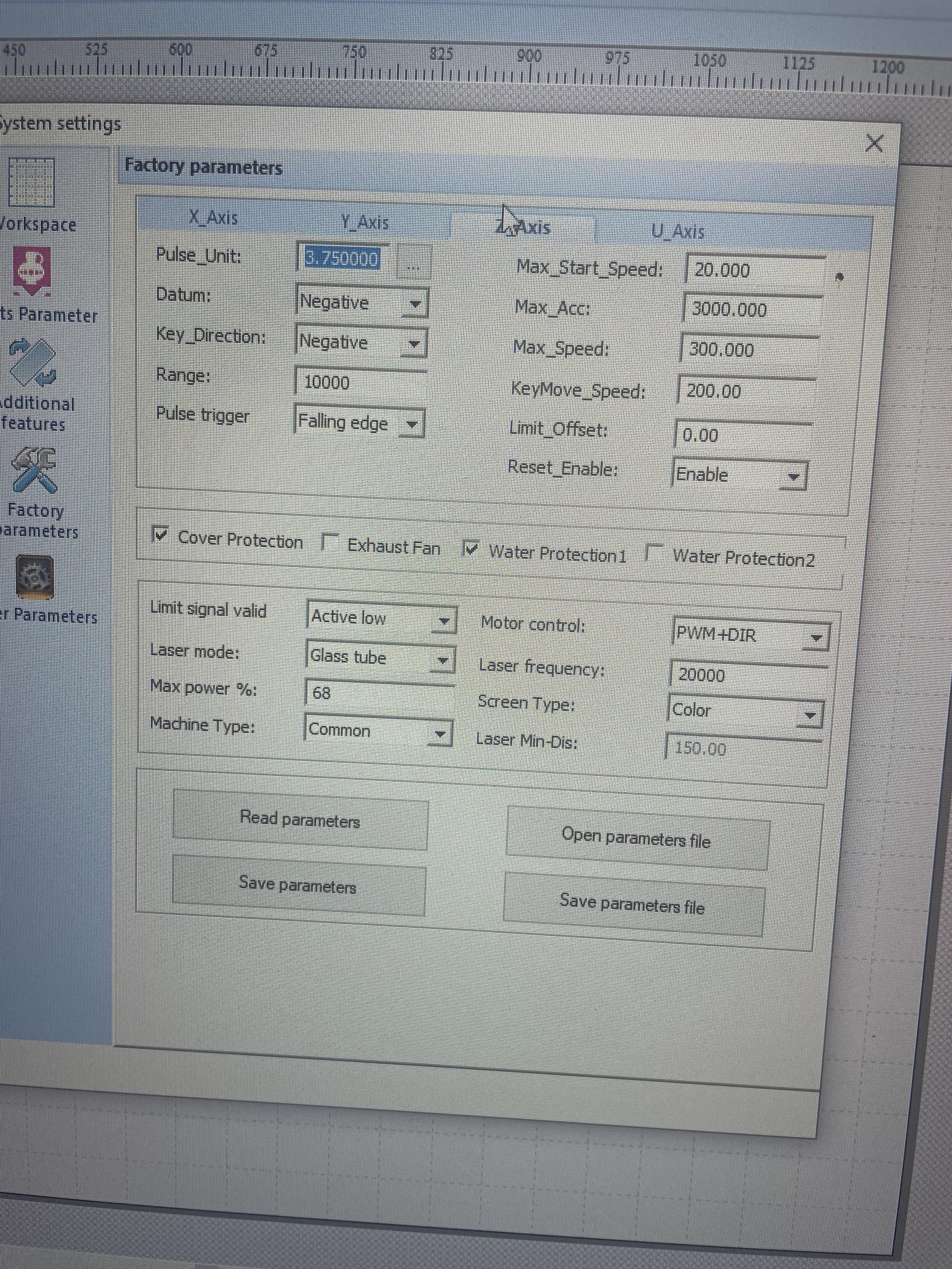 ok guys thanks for everyone’s help. got a lot of wiring to neaten up but it’s on and moving and connecting to lightburn. had to change the steps so it would move the entire bed. worried i’m missing some settings. i will attach pictures of my old controller settings. if you guys see anything that jumps out to change let me know. the height adjust is moving backwards i noticed