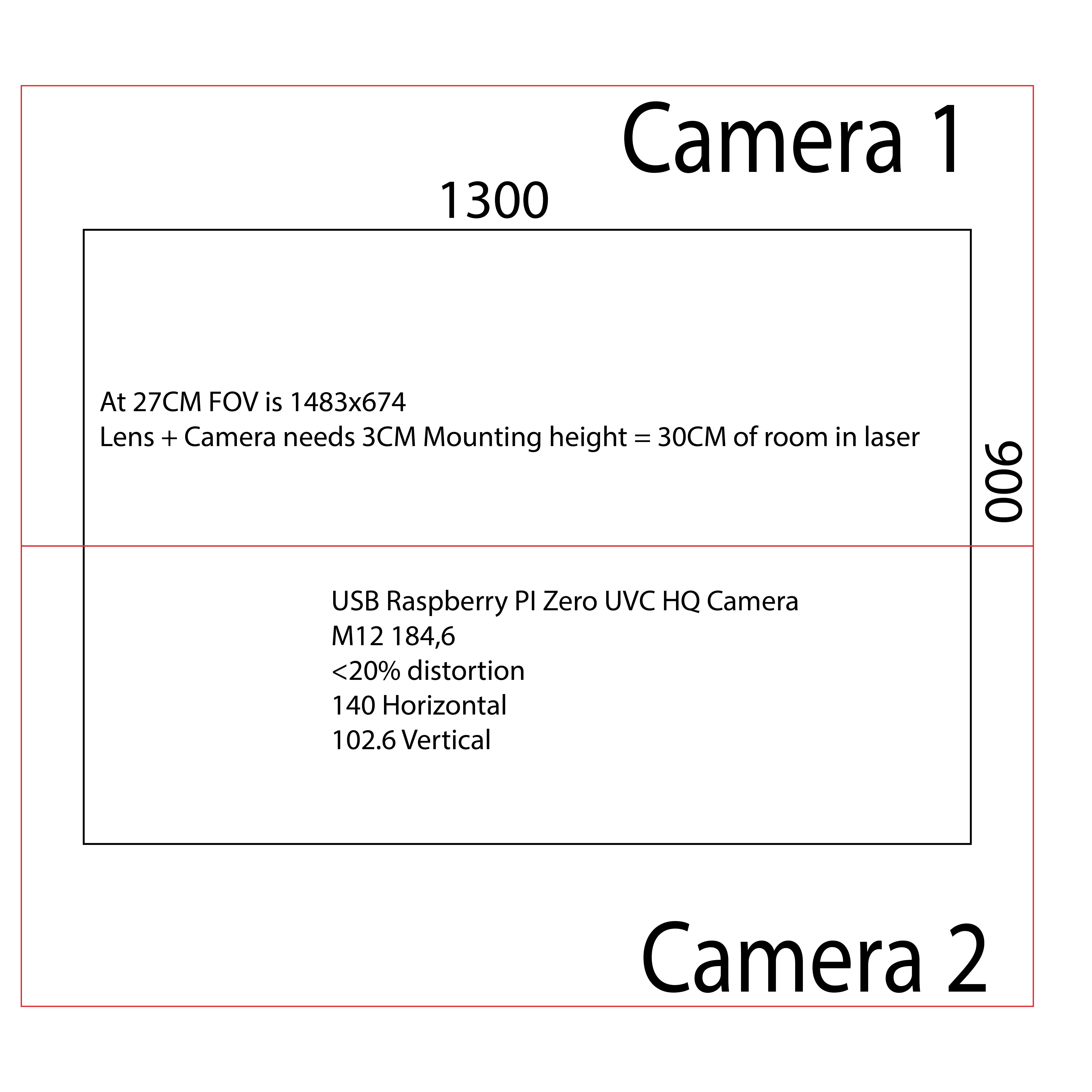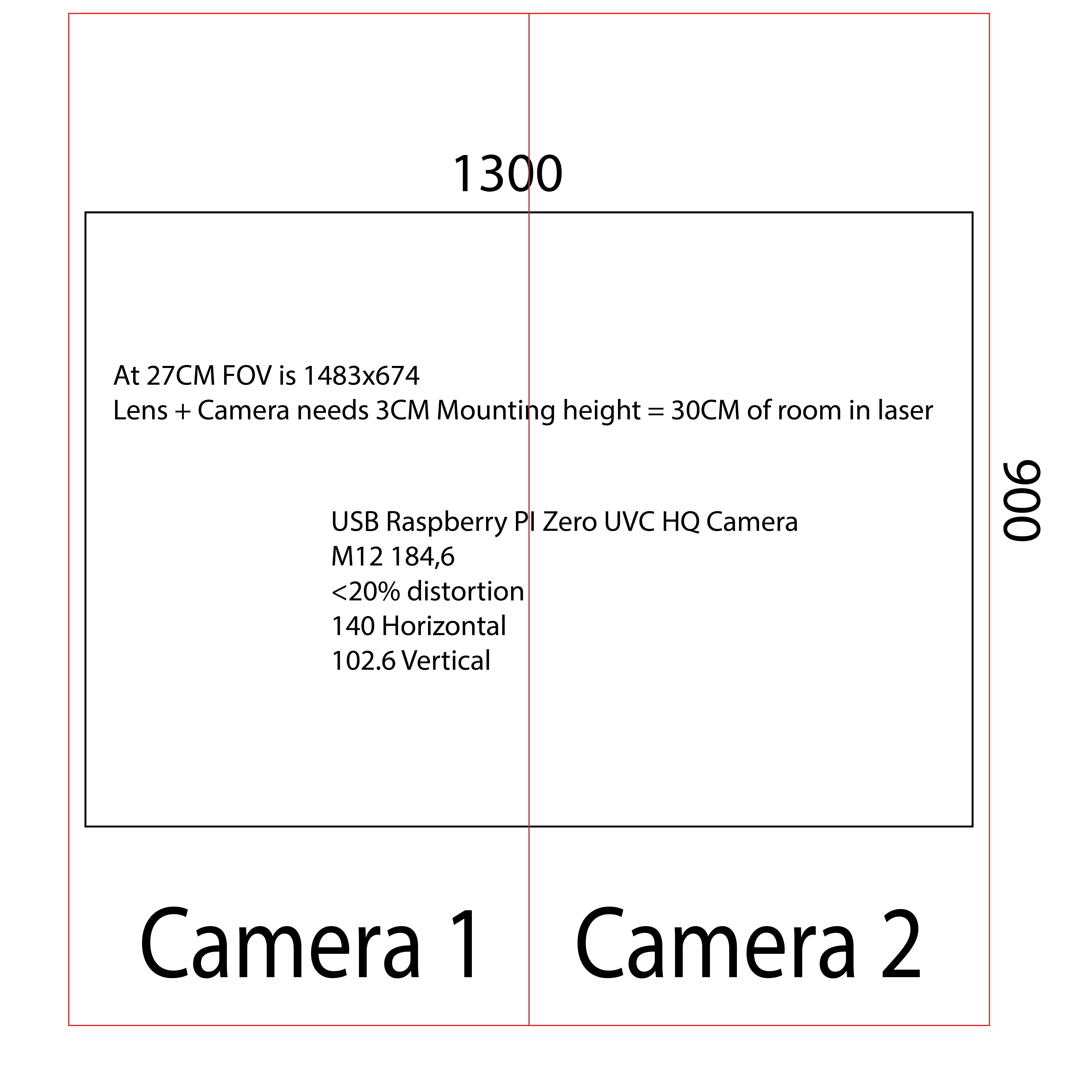 With just two camera’s I would have to following options if I have 30cm of mounting height (which I think I should have, but yeah I could be way off haha). Landscape is more efficient, but that means mounting two camera’s in the middle of the bed which is appearance wise not desirable. Portrait makes more sense (same as the Epilog) since the camera’s are more out of the way from the center. But yeah if I don’t have this height I might have to think of something else / just live with the constant opening / closing of the lid.