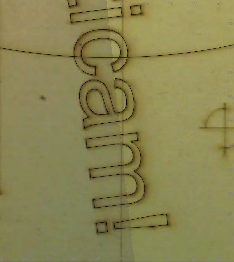 Then I burnt some text through the seam to see how it would look: