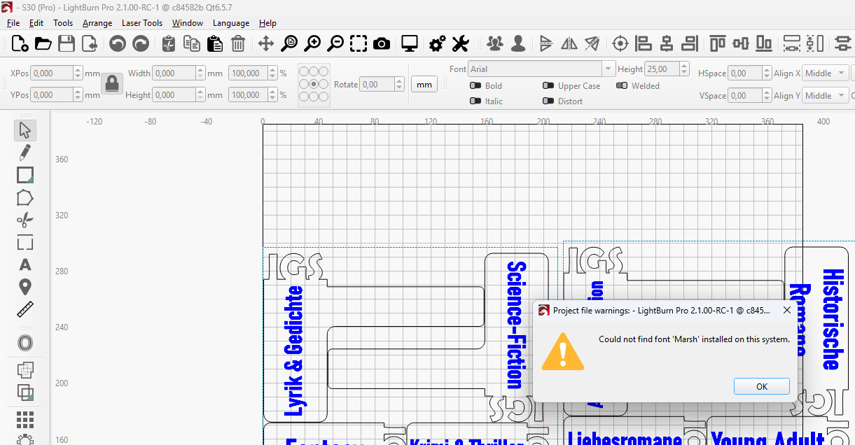 Not sure, if you answered this already, but which default font did you set in the LightBurn Settings?