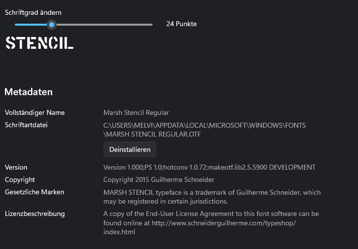 We found this “Marsh Stencil Regular” font on fontget.com and will run some tests.