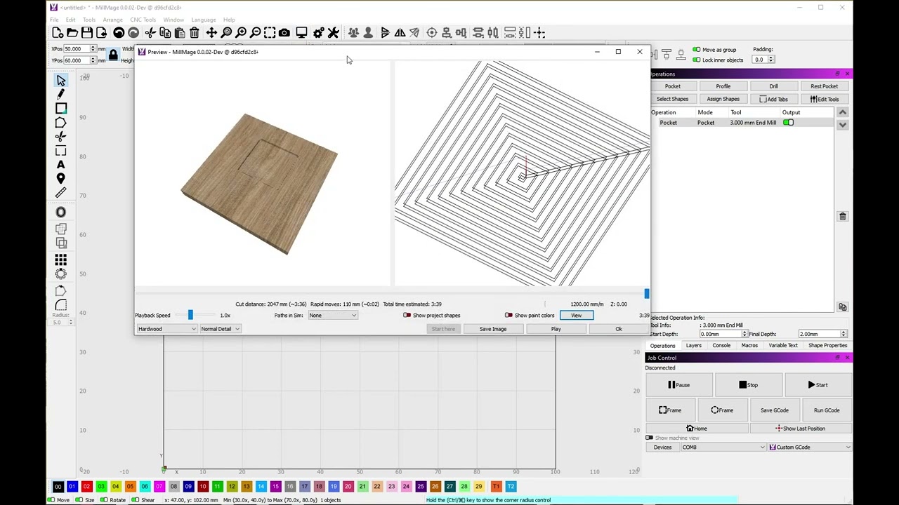 In Millmage I have drawn a square, I have tryed the methods mentioned above and a few of my own, but the machine does not move to center of the material.
