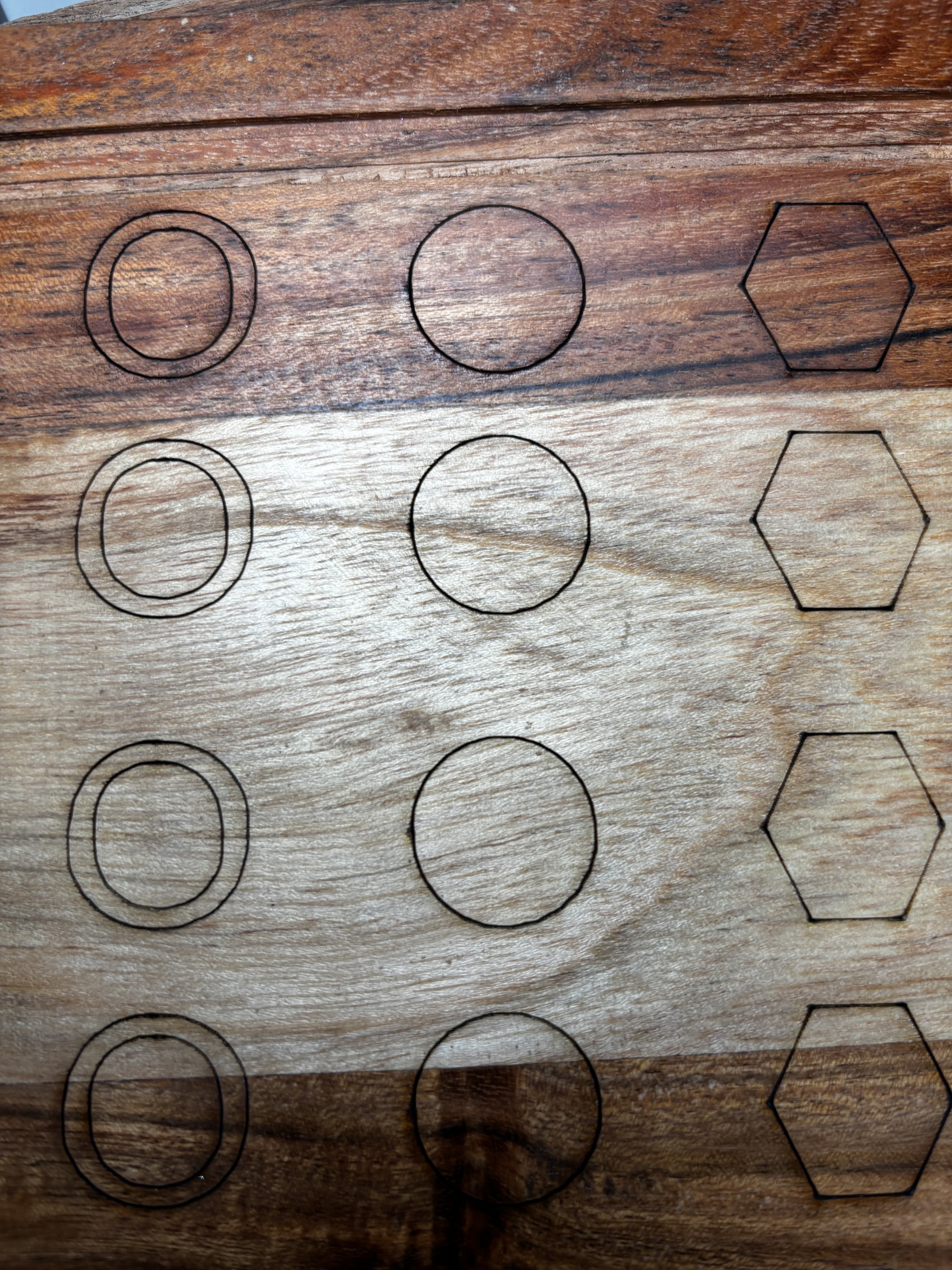 When you reduce your speed down to 10 mm/s and power as far down as possible, so you can just see engraving clearly enough, your letter “O” will probably look fine. Similarly, the problems will appear more clearly at high speeds.(200-300mm/s)