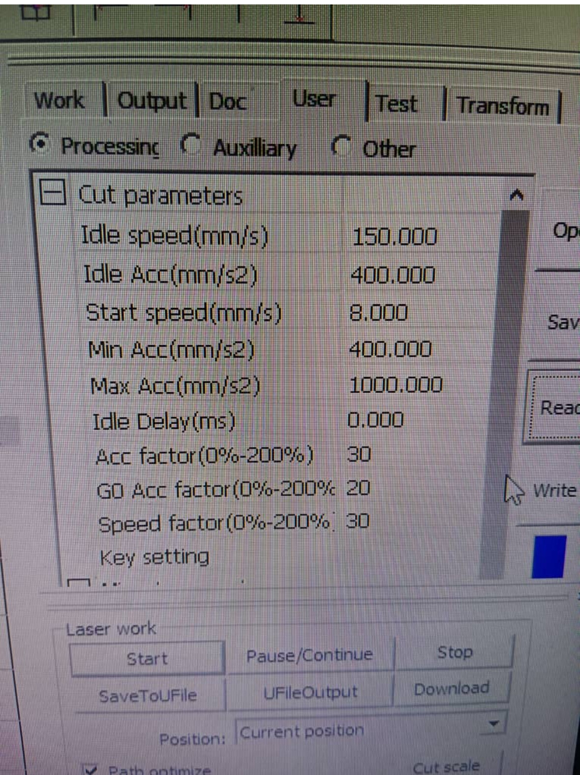 I am using Speed limit 100 mm/s. Power 10-20! And Light burn also cant read the Vendor settings…and I am connected with Usb.I am using Windows.Thank you.