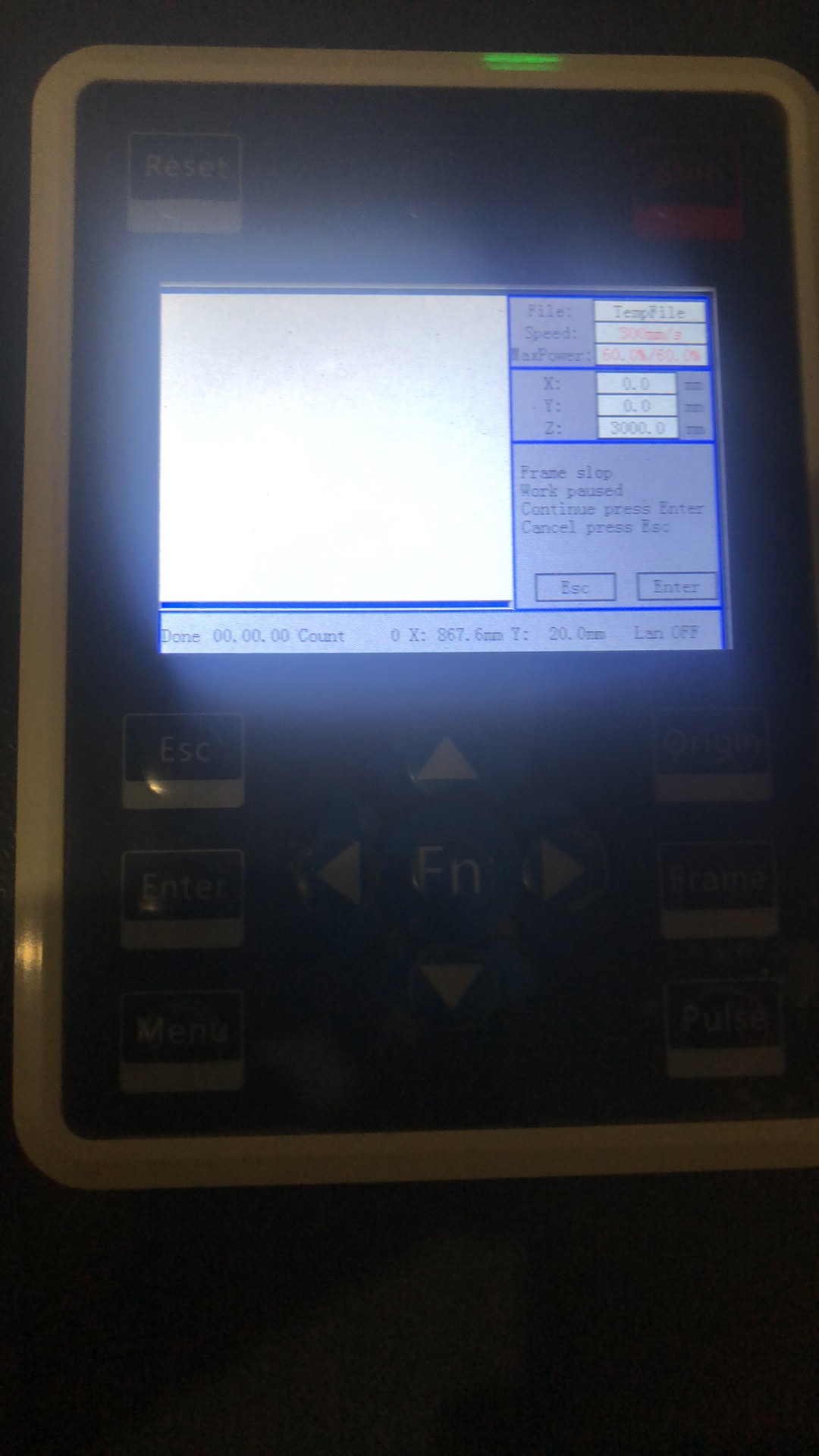 So did the frame slop error appear when you tried to send a file? Is that the issue you’re having, or is LightBurn not able to talk to the controller at all? The more detail you can give, the easier it is for us to help. Saying, “it doesn’t work” gives very little to go on.