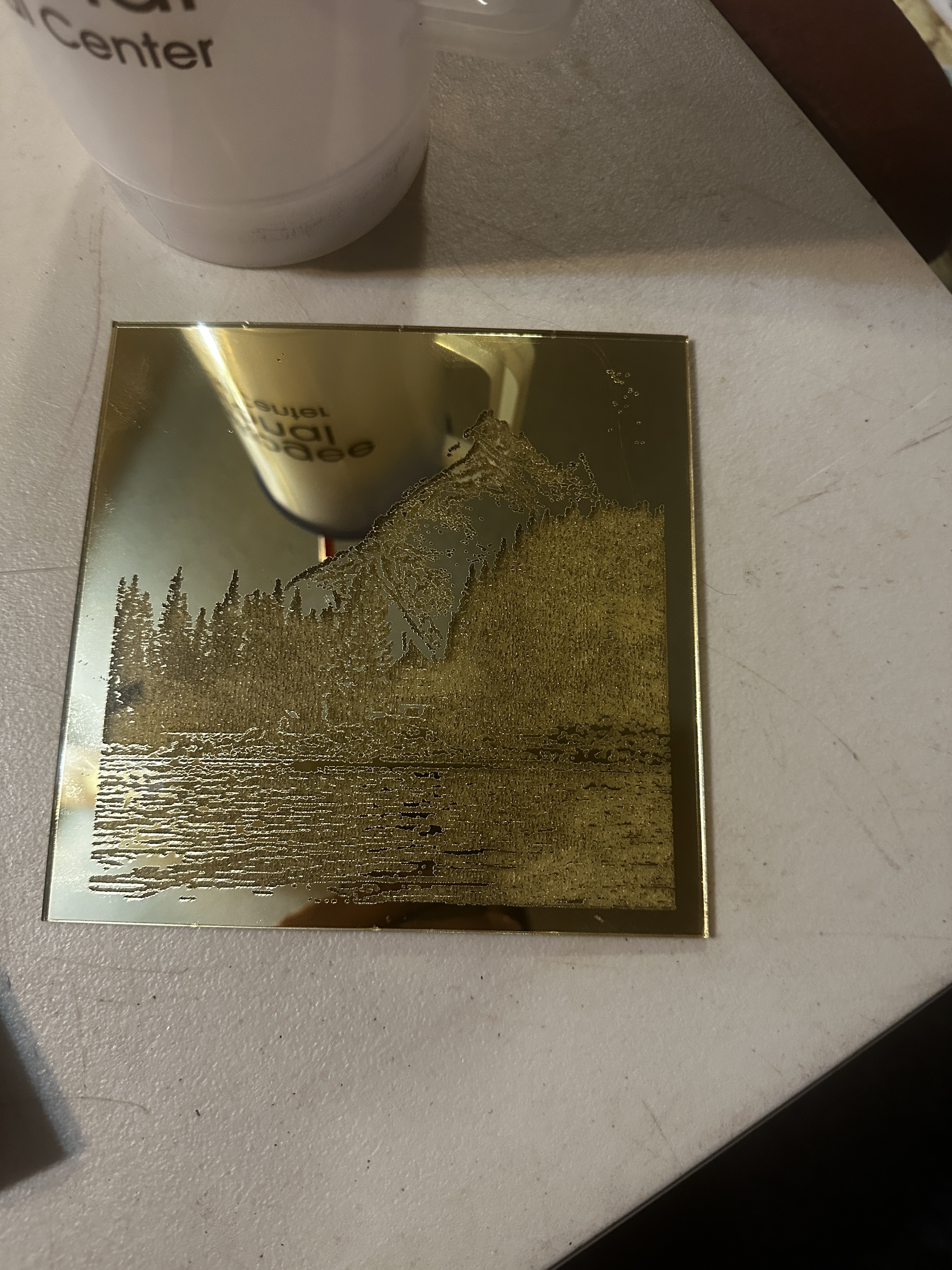 So i’m still trying with acrylic and im curious i tried to engrave a scenery pic mostly just to see i could before i say i can (ill have to add the original photo tomorrow) but i had the acrylic sheet on the reversed side (grey side up) and used