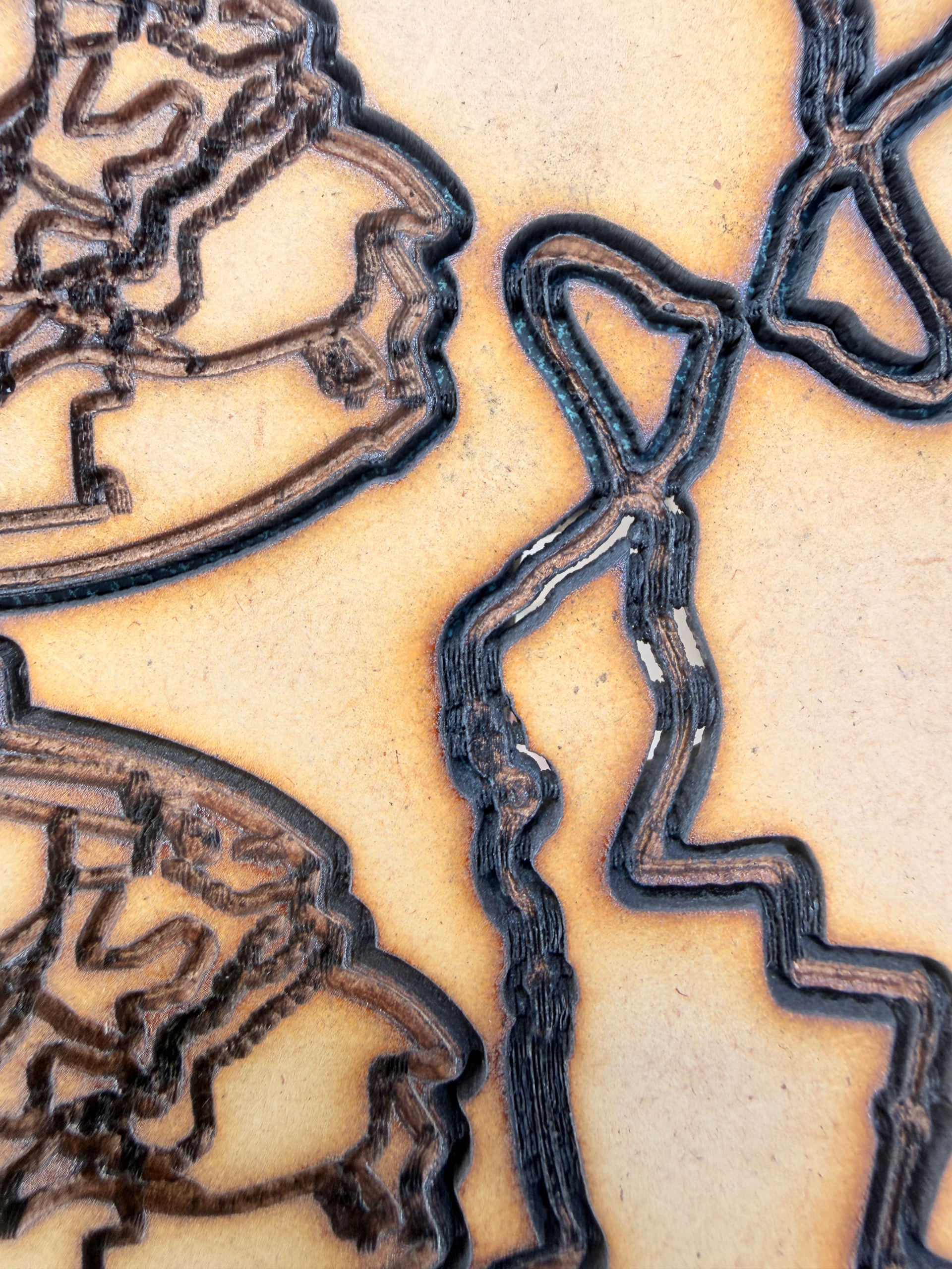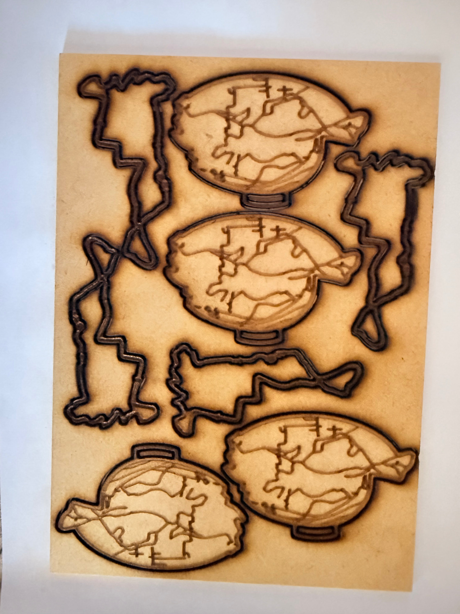 The images show that it is not the design that is flawed, as you can see that in the various location the burn through is fine in different areas (there are 4 medals per sheet), although it consistently fails in the same ālocationsā on the work piece (if I repeat the project, the burn throughās fail in the same places).