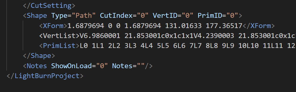 .LBRN2 files contain XML formatted text and can be opened with any text editor. (Iāve used VS Code to get synthax highlighting)