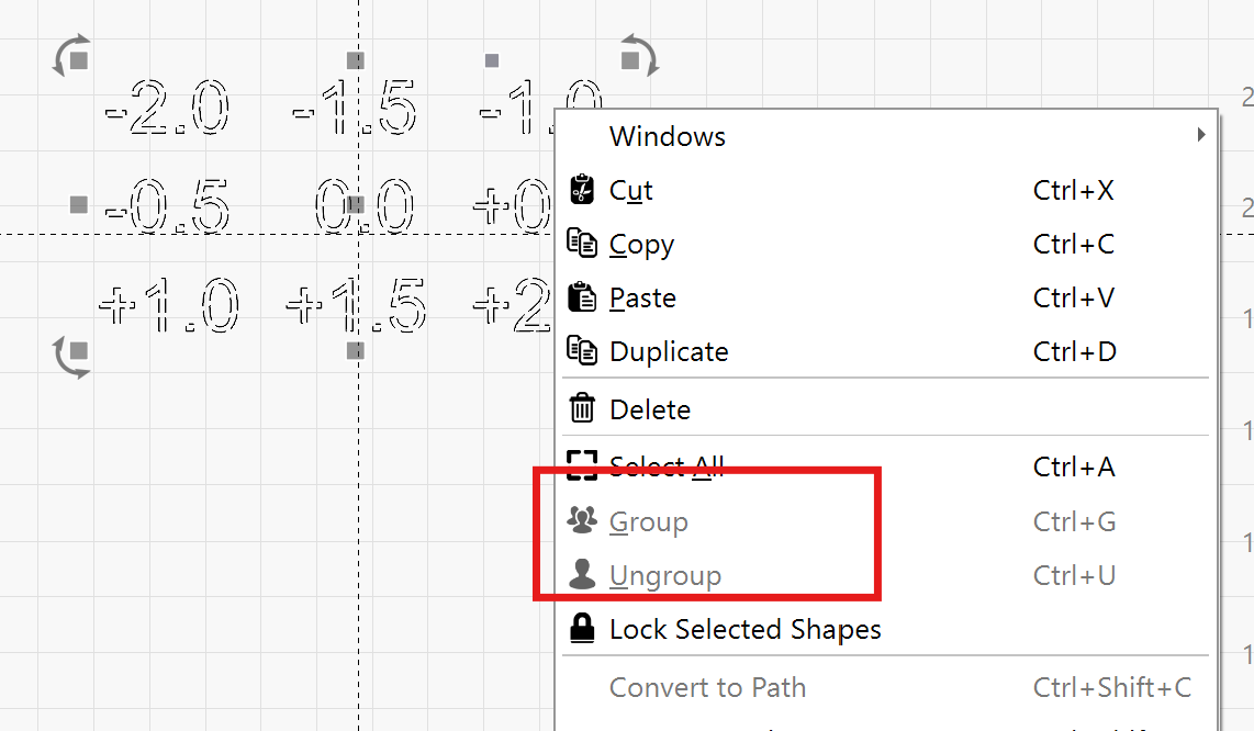 That creates individual shapes that can be grouped, which looks like this in the project file