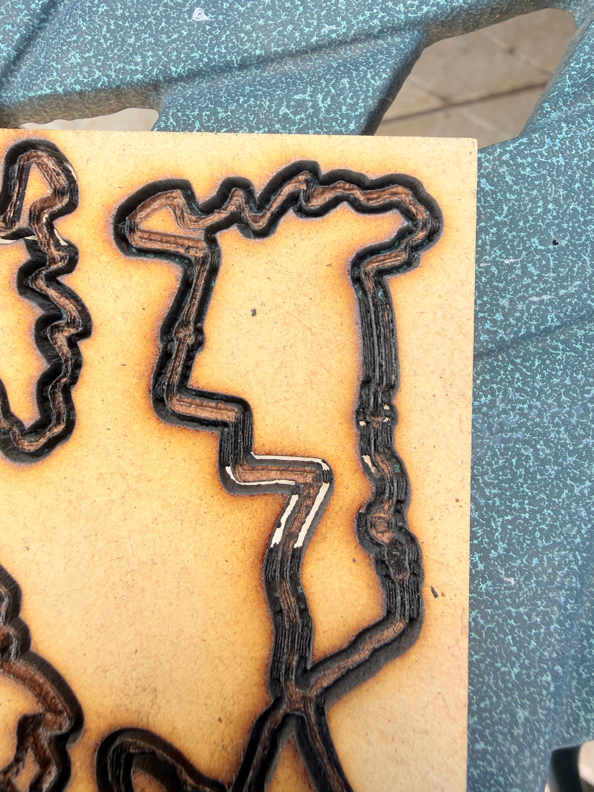 Even with a little warp in the MDF (yes it can do that), I get 100% free cutouts and a lot less char on the edges than with Baltic Birch or Basswood plywood.