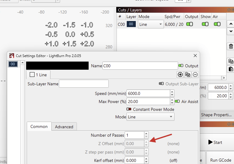 Even if they had a Z-Offset configured in the Cut Settings, it would only run at the same height, not at the -2.0 to +2.0 mm as the text suggests.