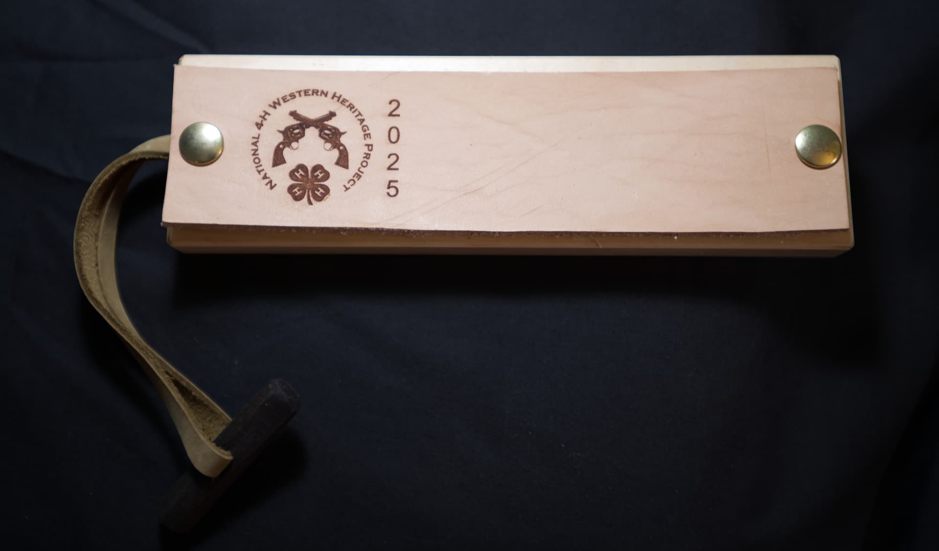Ammo Block for 4H Shooting Competition. Leather top opens to allow access to ammunition used during competition.