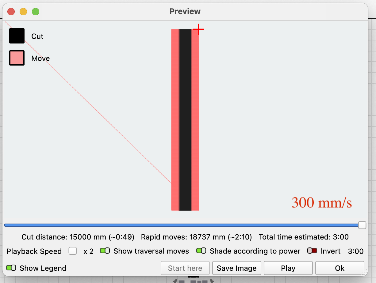- The speed at 11.67 mm/sec is very slow. If your J-Tech source is in fact 44W, you should be able to run this 20 times faster, depending on the material in use.