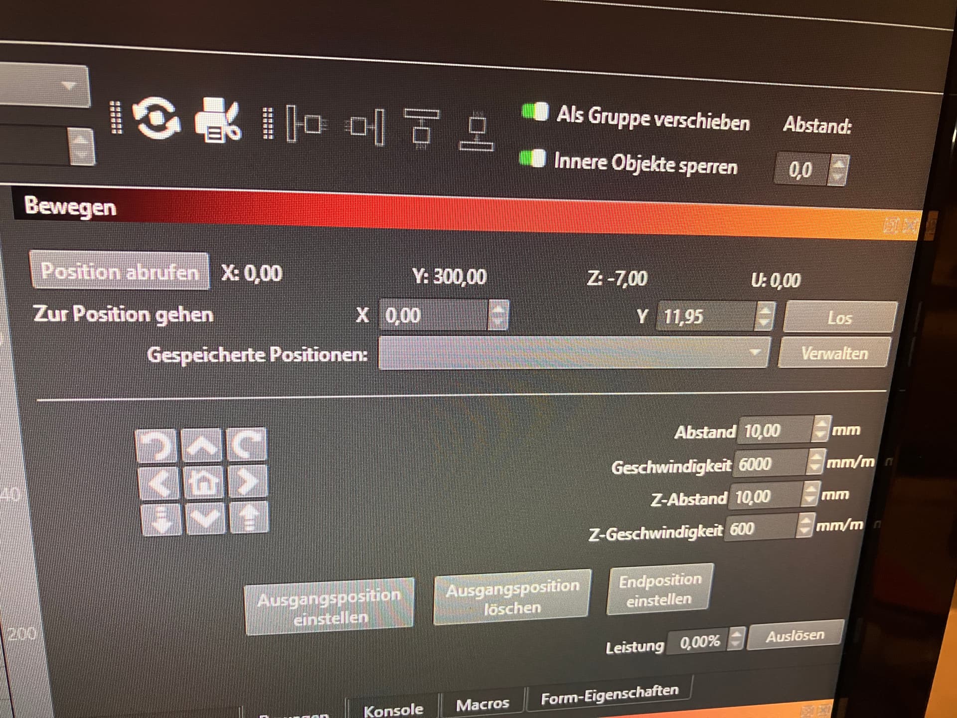 Vielen Dank für deine ausführliche Hilfe. Habe es jetzt hin bekommen das der Laser zumindest mal läuft und in die richtige Richtung fährt. Was echt eigenartig ist: Fahre den Laser per Klick in die Home Position, dann sollte ja oben rechts in der Anzeige Position X: 0,0 Y: 0,0 stehen. Beim mir steht aber X: 0,0 Y: 300 ??? Das ist echt eigenartig.