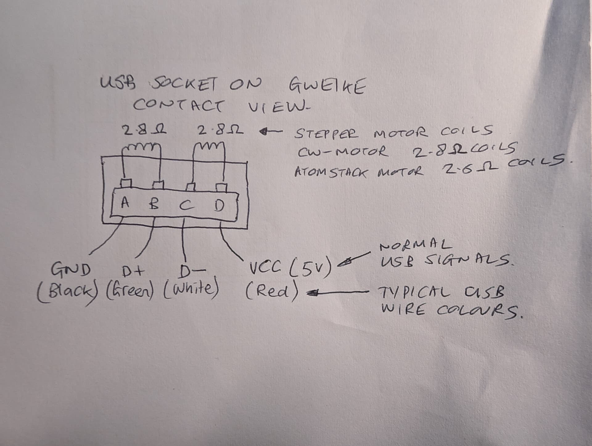 Considering it’s a two phase motor there are only a couple ways to wire it up. I cut up a usb extension and use the connector to make a crossover type, from one connector type to the other.