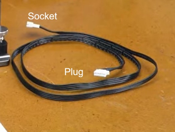 That white cable is an extender cable. It has a plug (which goes to the rotary motor) and a socket (where you plug in the cable that goes to the Yaxis motor). You unplug the Yaxis cable from the Yaxis motor and plug it into the socket end of the white extender cable.