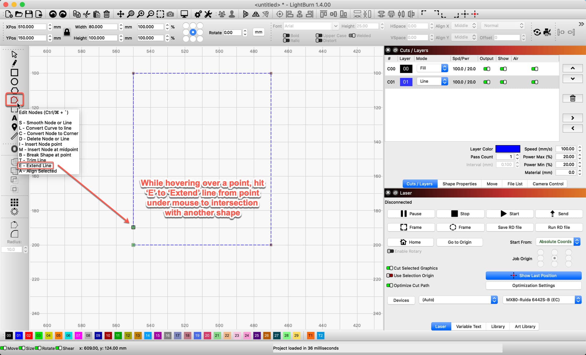 - -‘Node Edit’ tool ‘Extend’