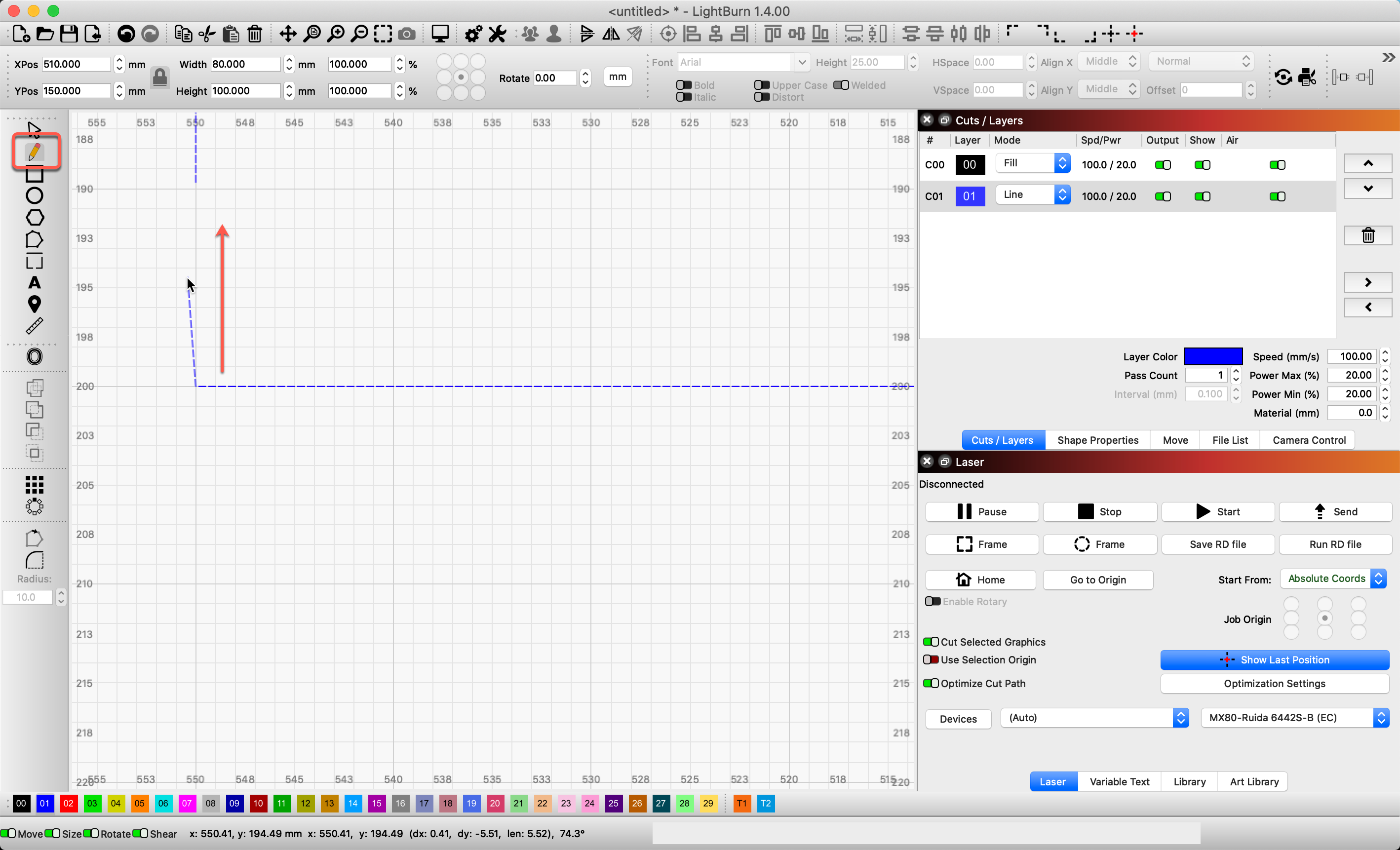 Draw connecting segment using ‘Pen / Draw Lines’ tool
