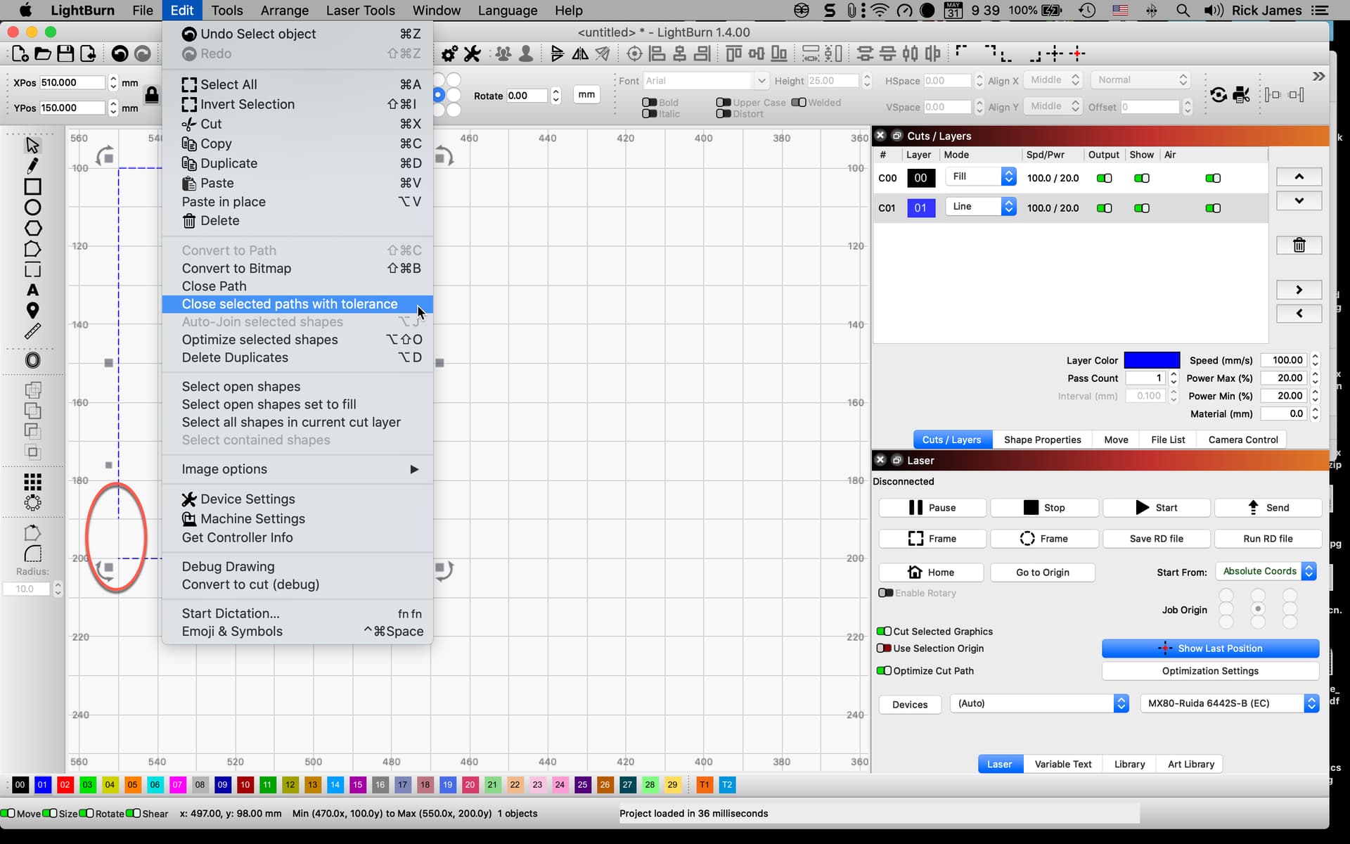 ‘Close selected paths with tolerance’