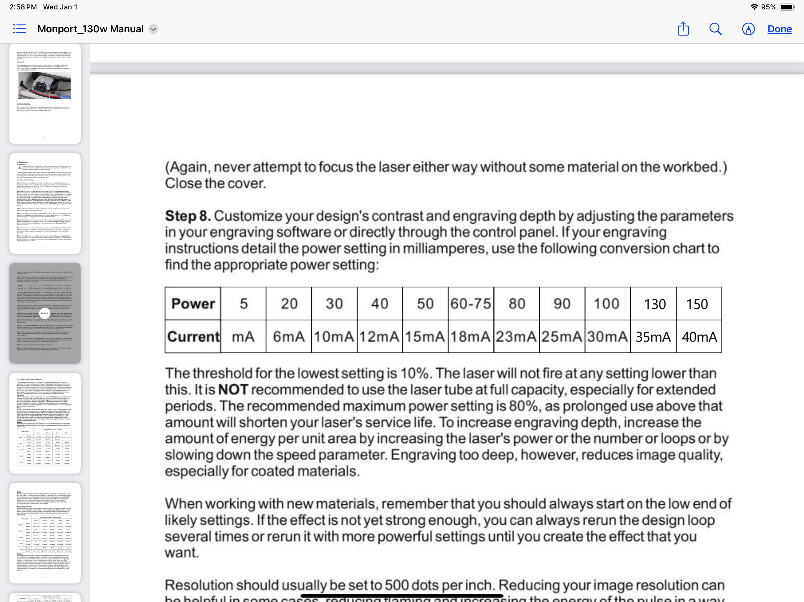 The manual also recommends the you not go over 80% long periods to save tube life, as most manual I suspect !