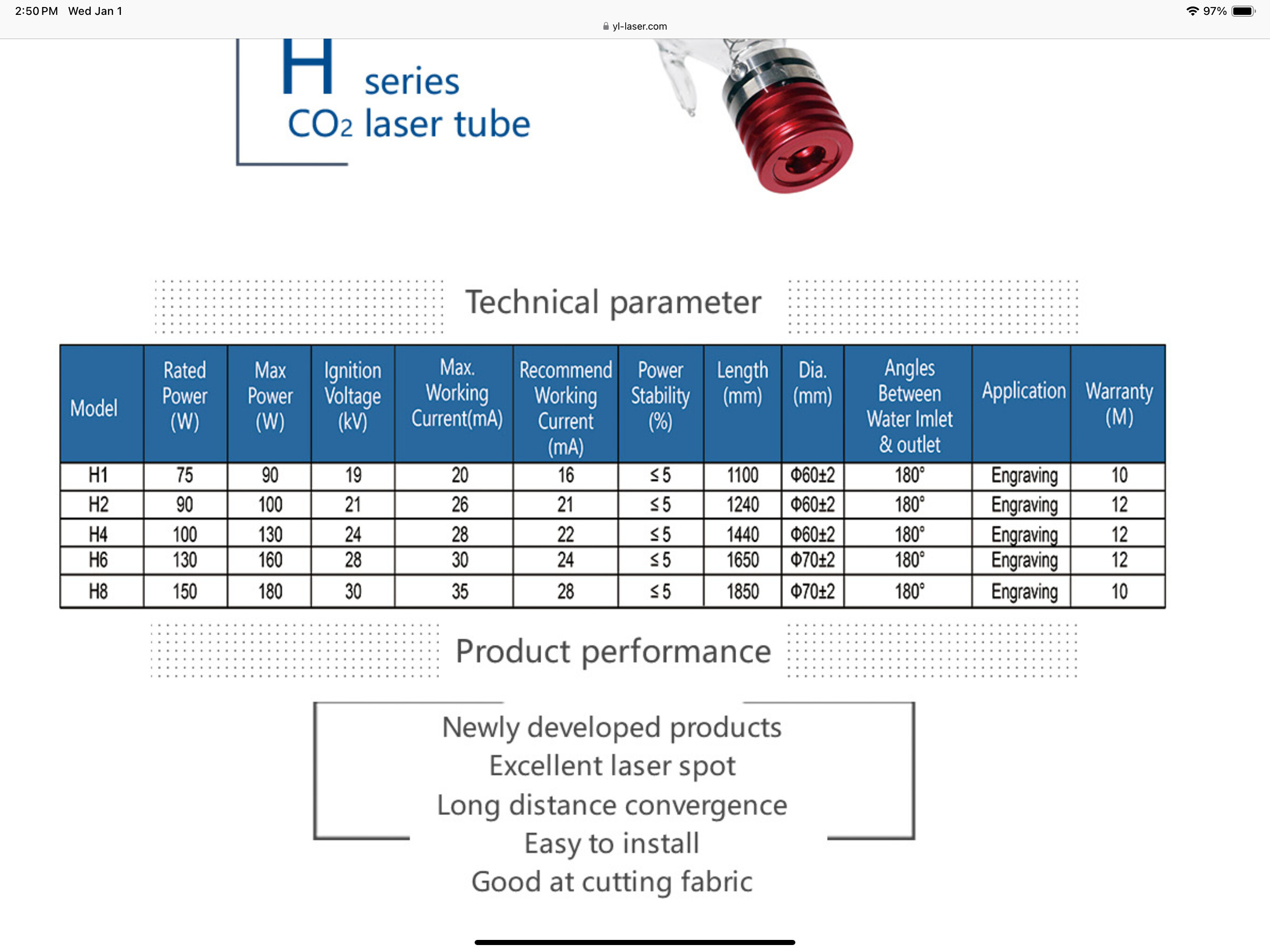 I wish I could find data on that. But I’ve never seen even poorly substantiated claims on how that works. I did try changing the laser from 26mA to like 32mA for a brief power test- since this is a 23% increase in current, my rough expectation would be a 23% increase in output power. I don’t recall the actual numbers but it was a much lower increase in output power than that. I wouldn’t even call the increase significant. I would bet for sure that 32mA would degrade the tube faster in a really significant way, though.