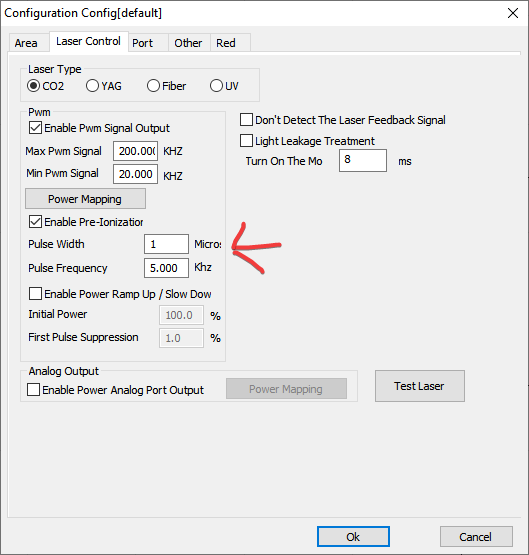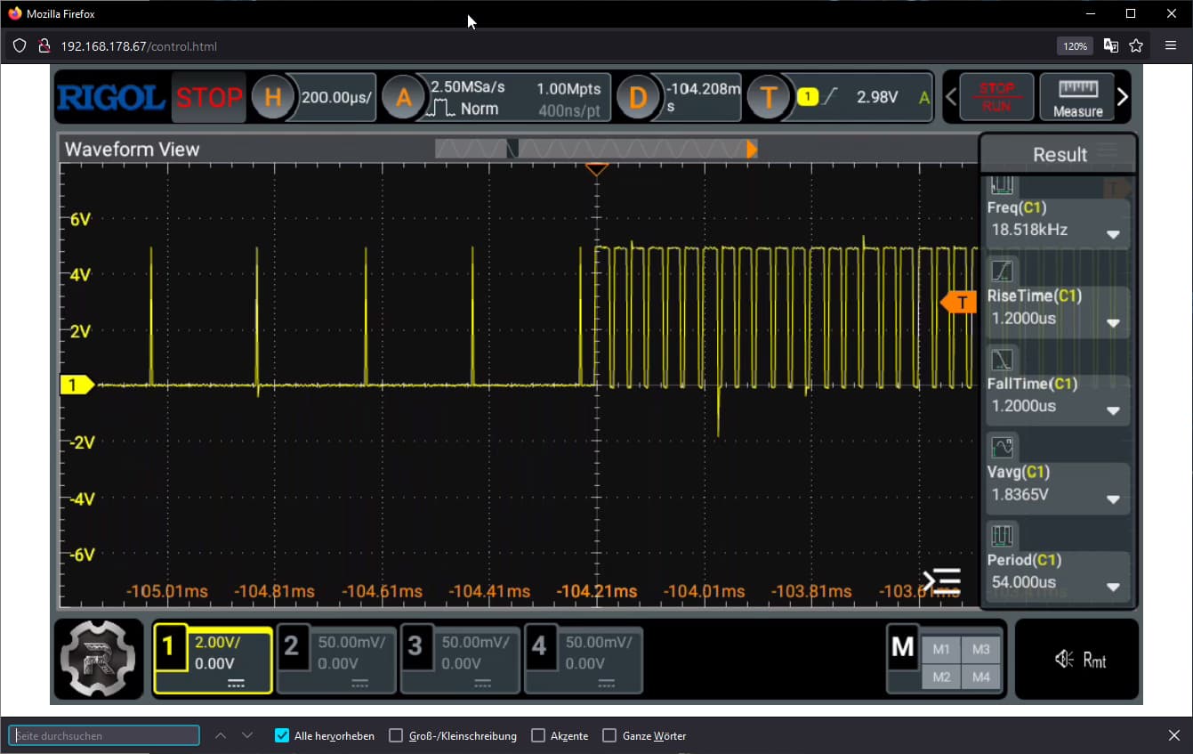 there is 50ms of tickle when i hit start, then comes the PWM. no idea where to set the pre-delay.