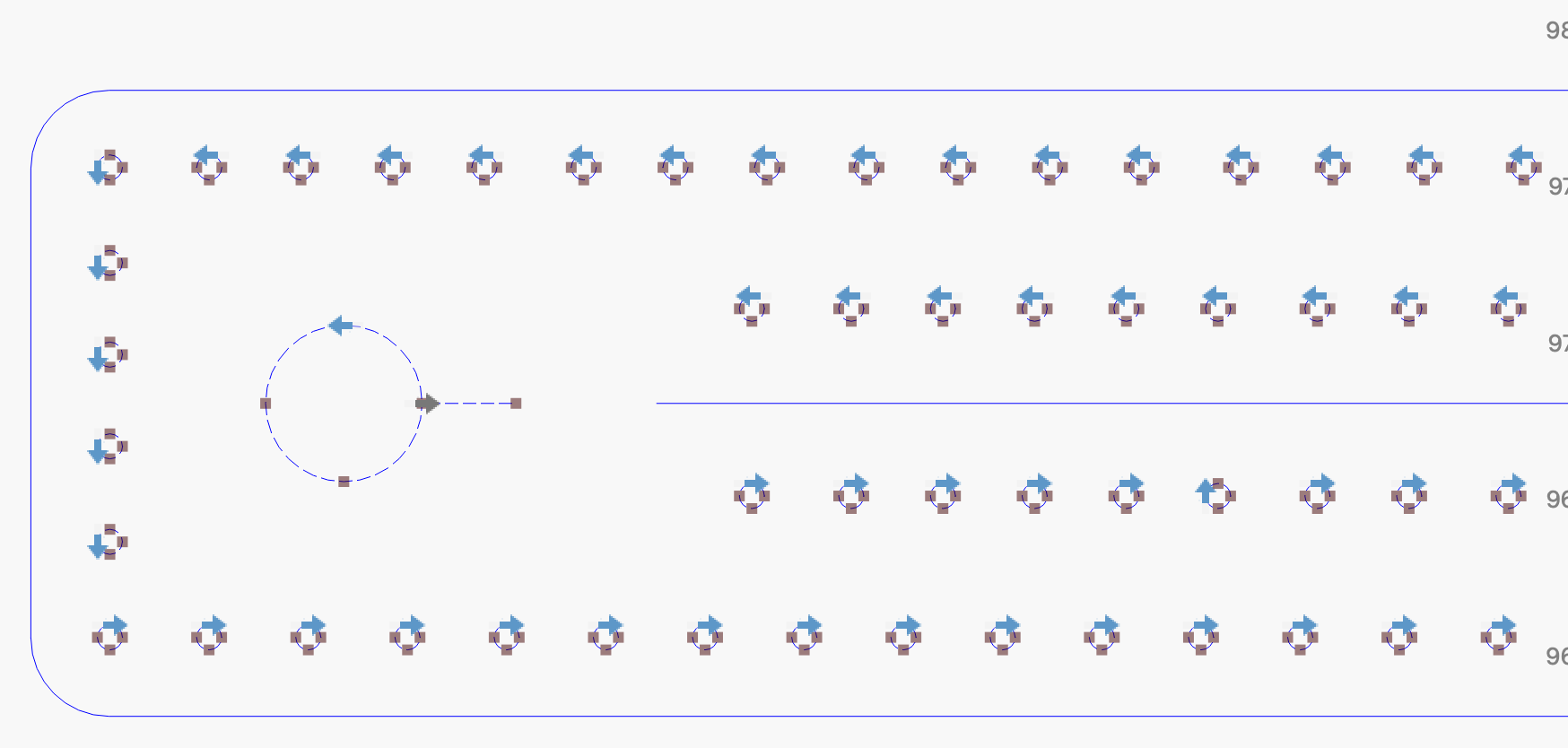 - motion follows a continuous “flow” (e.g., left-to-right, snake pattern, or nearest-neighbor)