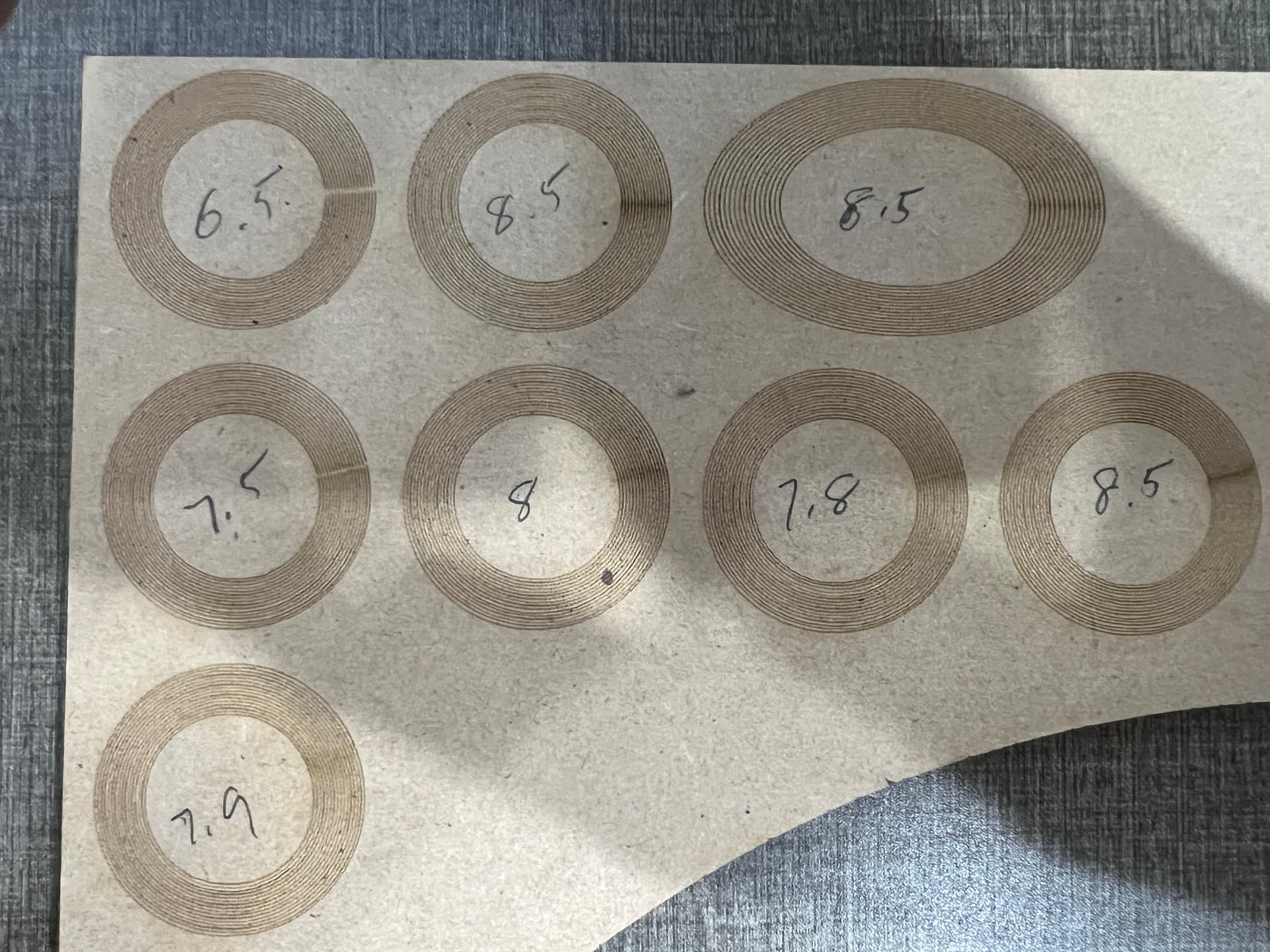 Here are my results after playing with Min power setting. All the circles were etched at 300 mm/sec, 30% max power amd min power as shown on photo. I’m using a 100watt C02 with 2.5" lens for this test. In this situation I found 7.9 or 8.0 min power to provide the best result. 7.8 or less leaves a gap and anything over 8.0 starts to overlap like your sample.