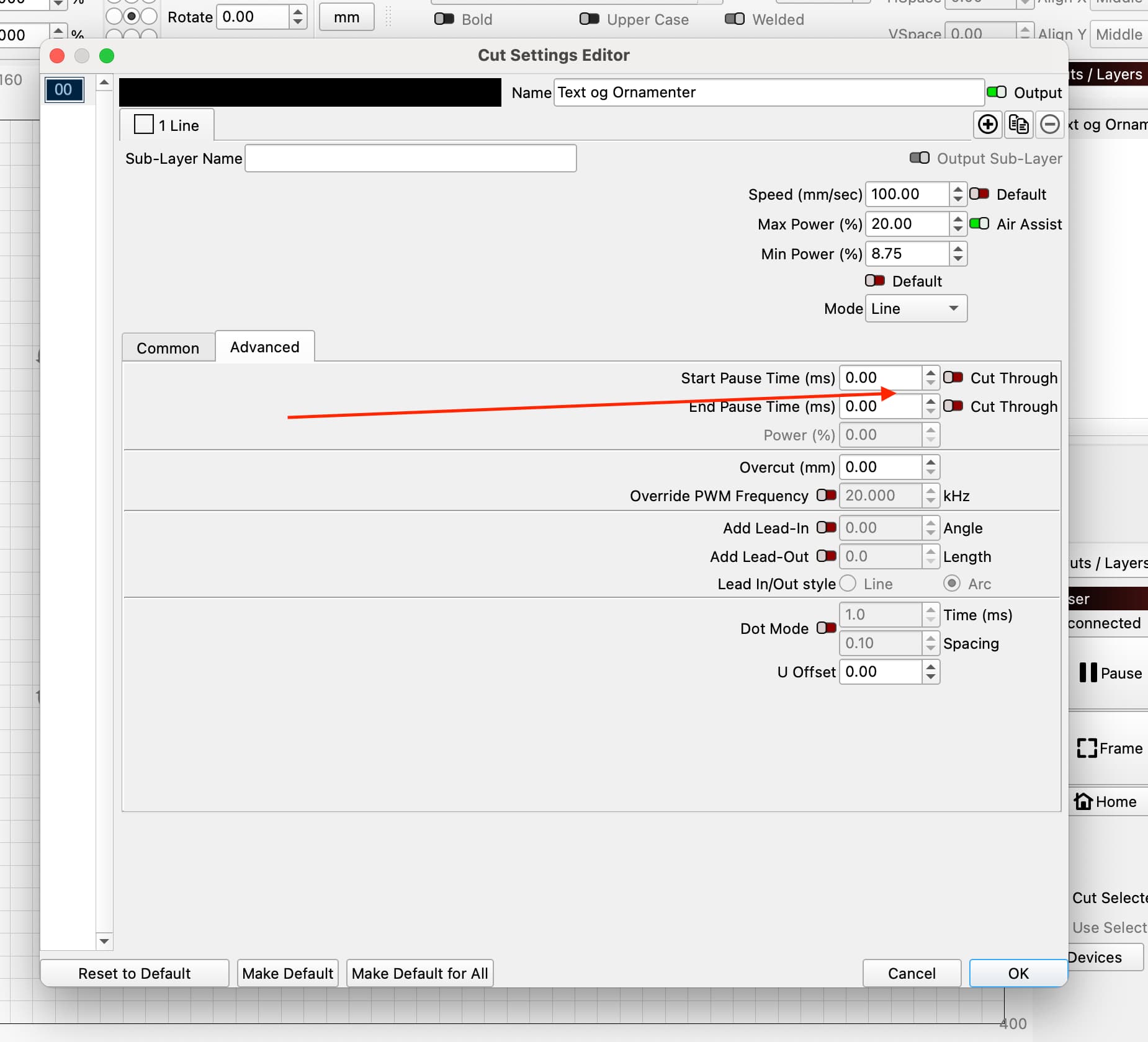 I’m getting burns from doing circles in Line mode. The burns are where the laser starts and stops. I’ve tried lower speed/power but nothing has worked. Because I’m using CO2 Ruida controller so there’s no adjusting Constant Power feature. Please help..