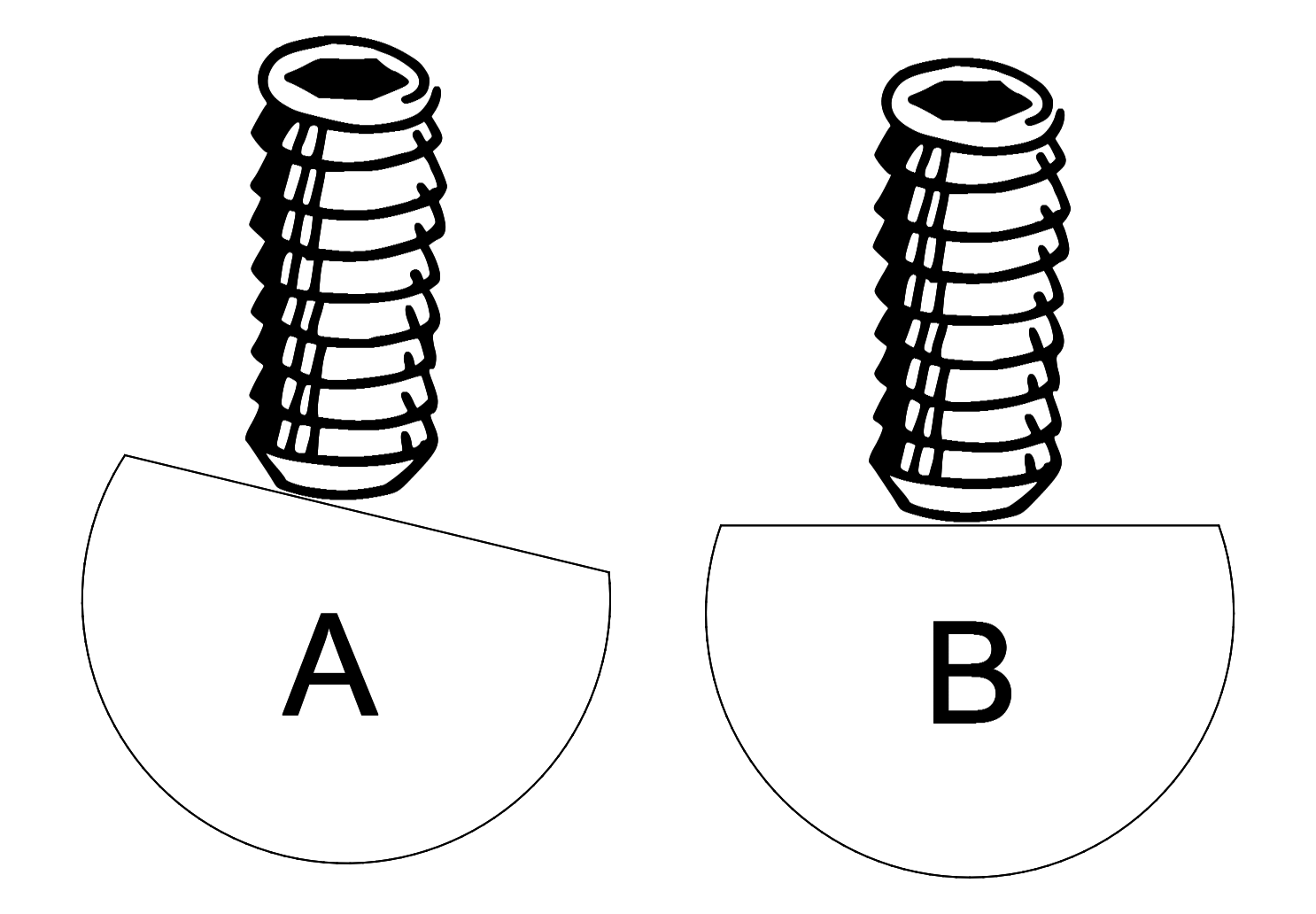 - Once you reach a point where you can no longer tighten the set screw, you have reached the position in the “B” image.