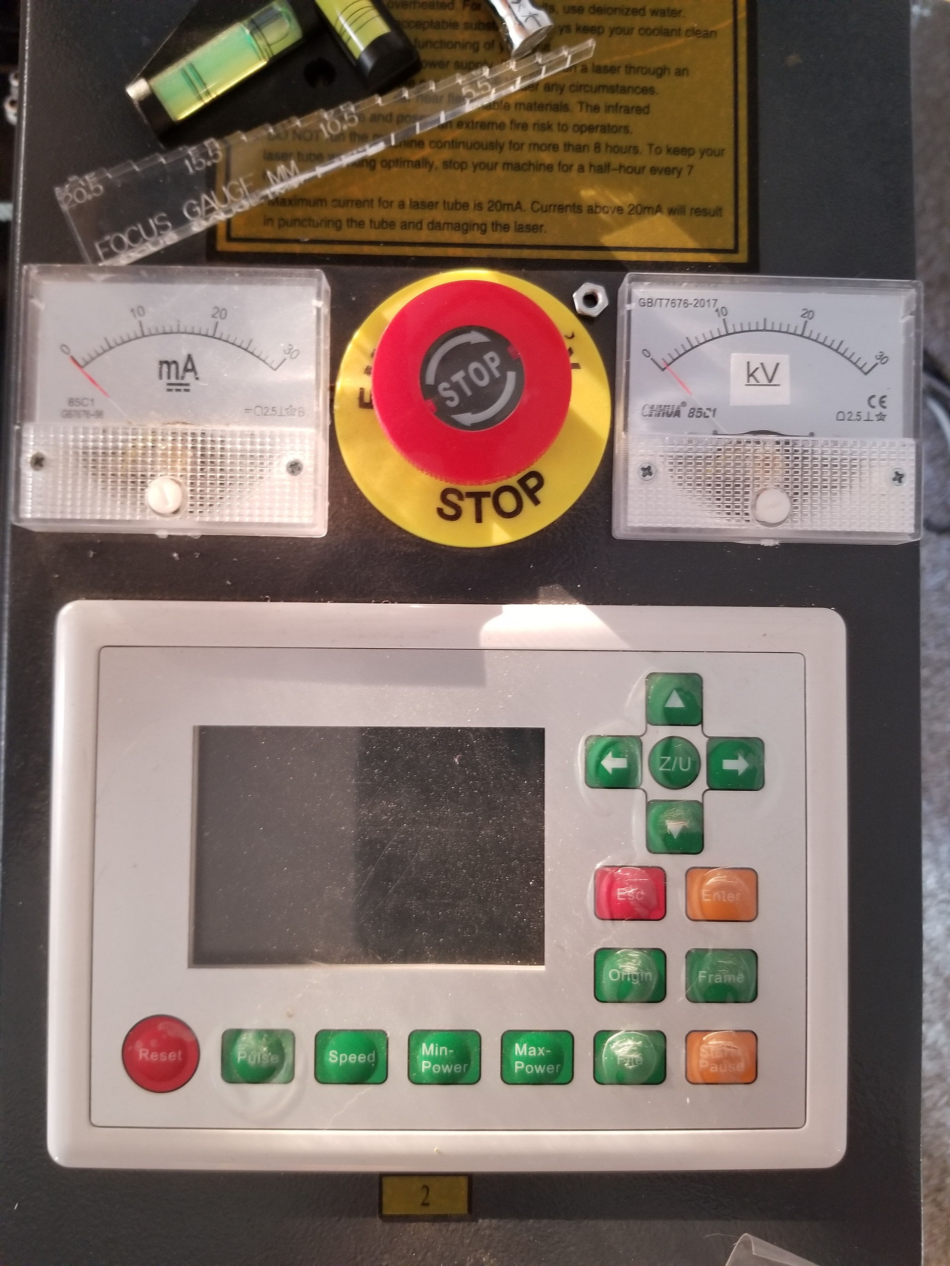 I am trying to help a local community workshop/makerspace with their CO2 laser cutter after they replaced the tube (Ruida W2). The laser appears to fire, but with low and fluctuating power, and there is a buzzing noise. I think the buzzing noise is coming from the tube and not from the power supply/electronics bay.