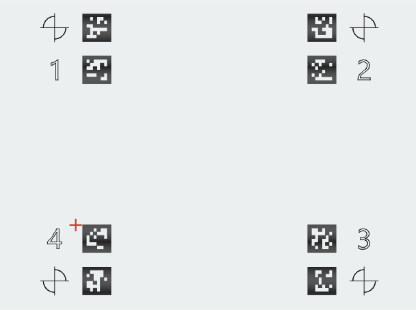 The QR-code-looking tags are AprilTags, which can be detected automatically by the camera.