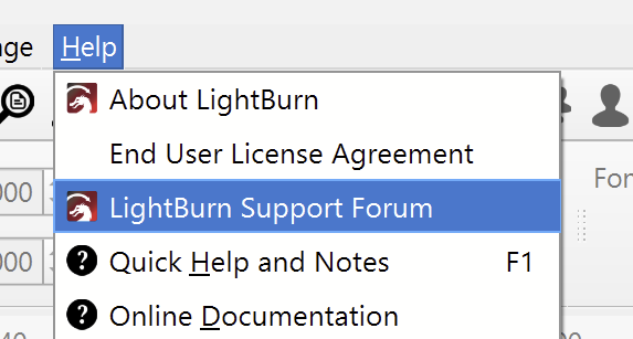 I can’t confirm this. This option correctly points to forum.lightburnsoftware.com