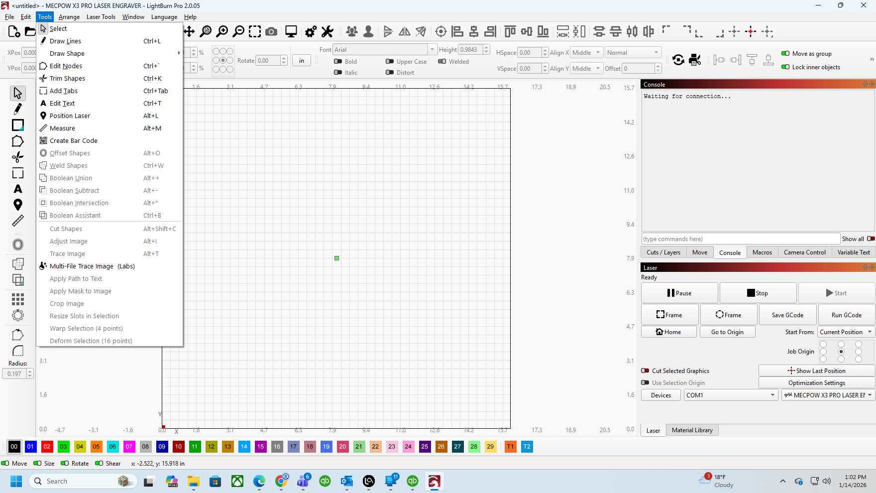 I have a 30-day trial version, which is supposed to be fully functional software. However; several functions like the Outline feature do not functioning. I have emailed LightBurn for answers as to why they don’t work.