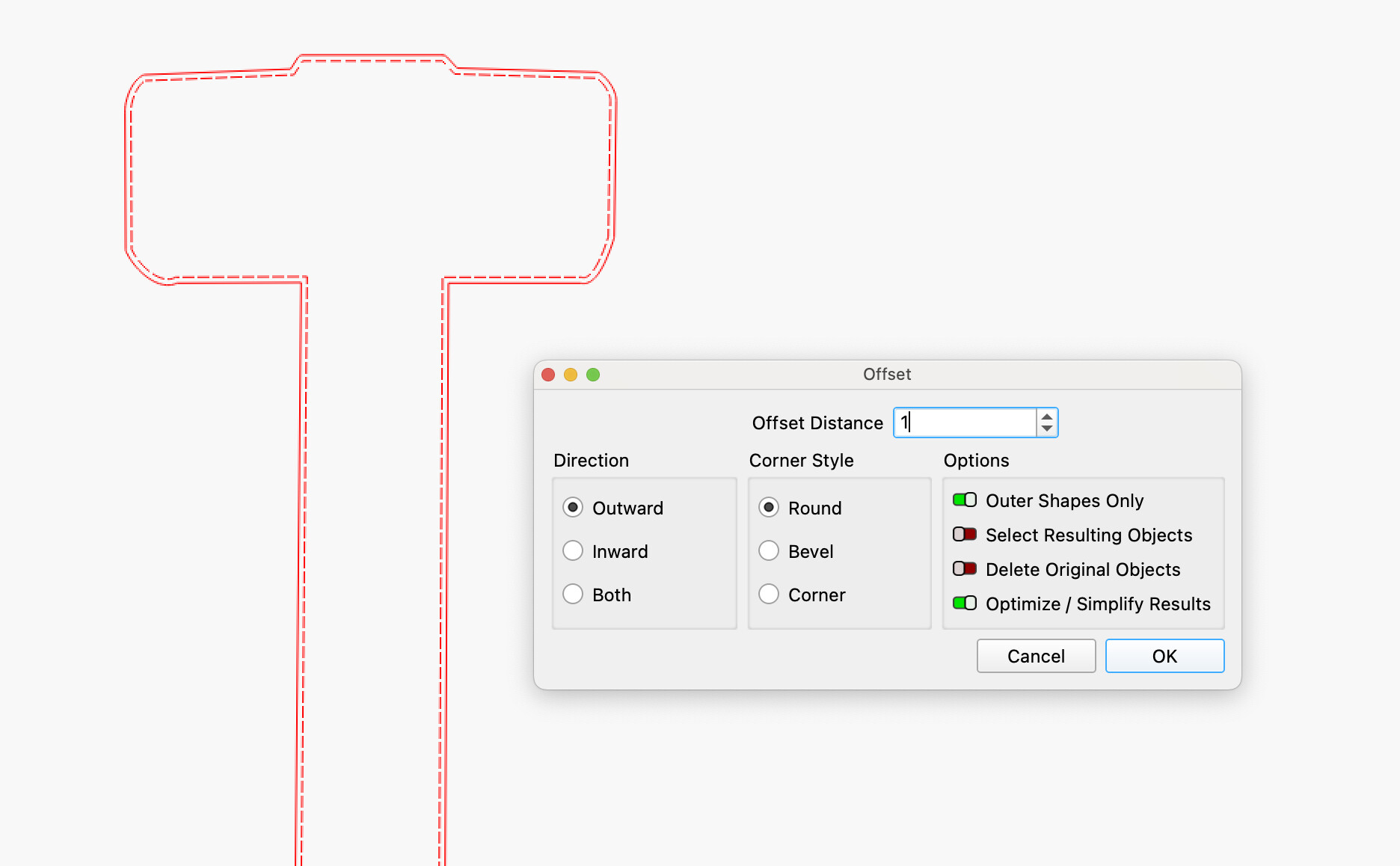 Image 1 is traced image 2 is drawn/cut out, both results can be used to add the necessary offset.