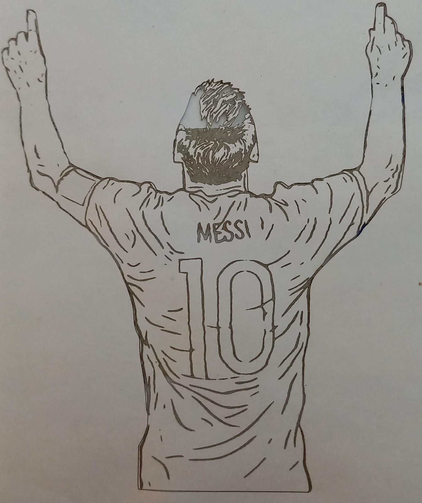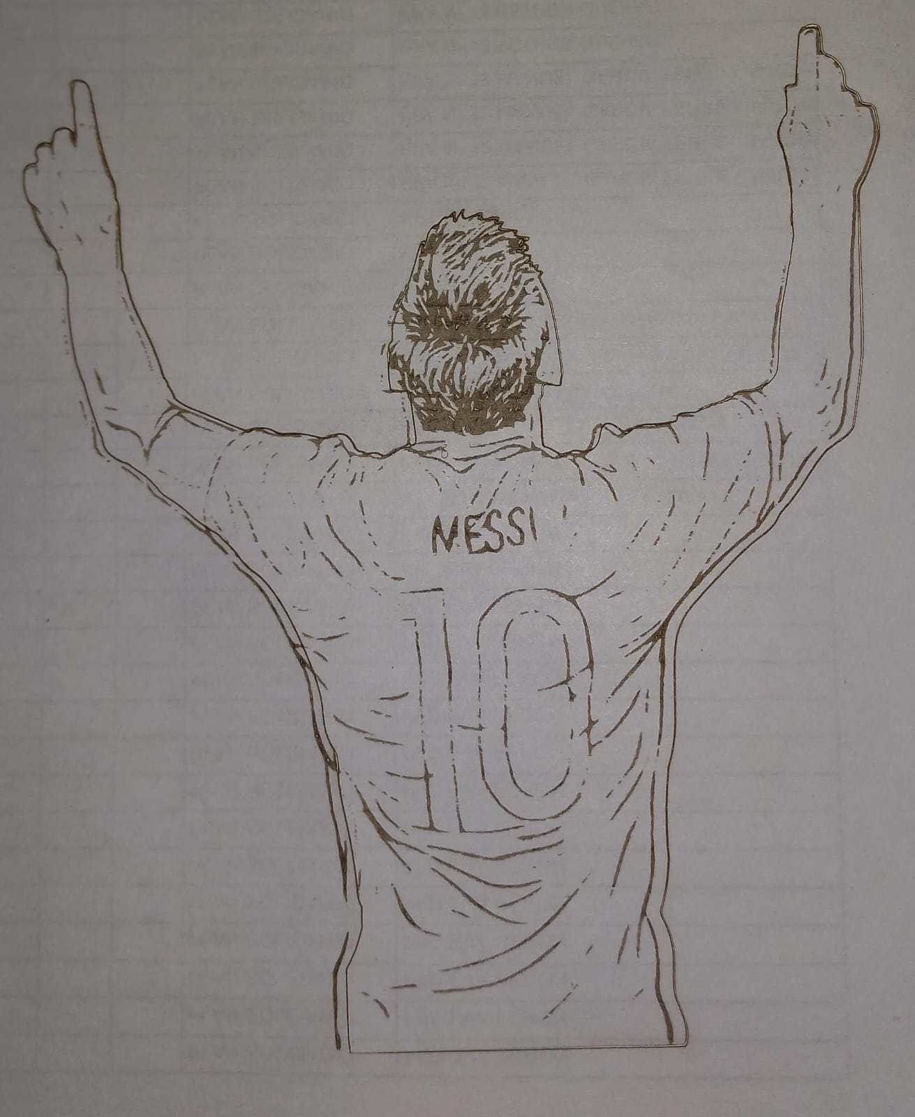 So the solution is to keep the interval size at this multiples in which the machine can keep its precision. i guess i had try every engraving with this 0,07mm interval, that cause the problems. So with the 0,1mm interval i should be able to finally use my engraver for filling and cutting. To finaly prove to myself the machine was working well, i went back to my Messi design, rotated it 90 degrees and made it larger to make this the definitive test.