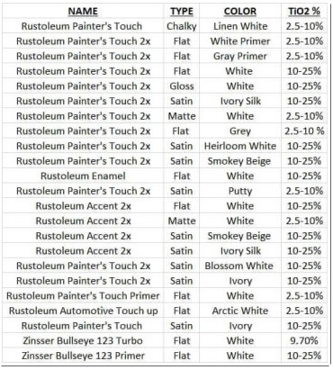I got good results with the RustOleum Heirloom White. The Cold Galvanizing Compound also worked. However, I got tired of the fumes from the paint and using lacquer thinner (@ $25/gal) to clean up afterwards so I made a water based version. I bought TiO2 on Amazon from Essential Labs for the recipe. The recipe has 25 g. TiO2, 25 g Tempera paint (helps suspend the TiO2 and gives some color so it can be seen on the tile), and 70 - 75 g. water. I mix well with a coffee frother and spray with a Harbor Freight touch up spray gun. This gave excellent results and all clean up with water and no solvents. Also cheaper than the Rusto paints. All this using 10W XTool D1 laser. Good luck.