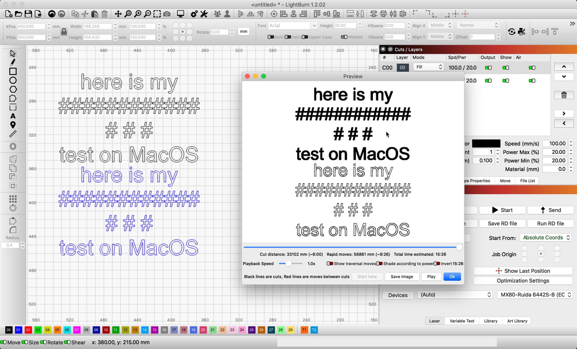 At moment I have laser cutting # as I had typed the text in âNotesâ and copied and pasted. Yet to reach that text in the burn but it appears ok.