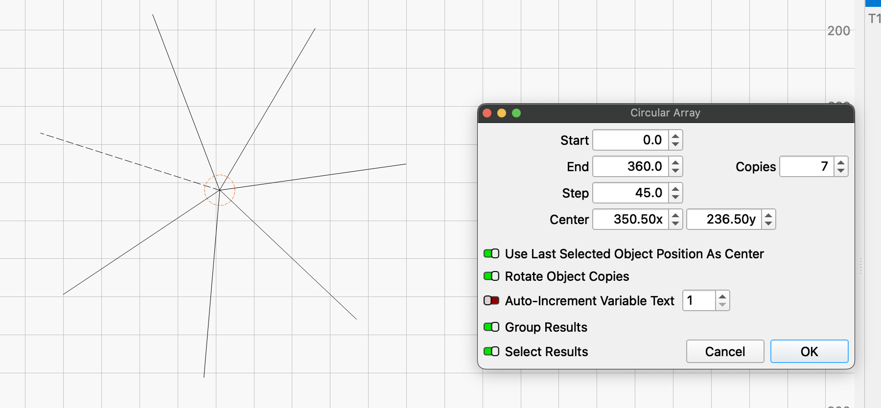 Well I need some help with the circular repetition tool as I need someting very simple. I want to repet on a circular way a line, but with the center at the end of the line, not the center of the line as the tool is doing. It is important for me (end not from center) as it will impact the follow on process.