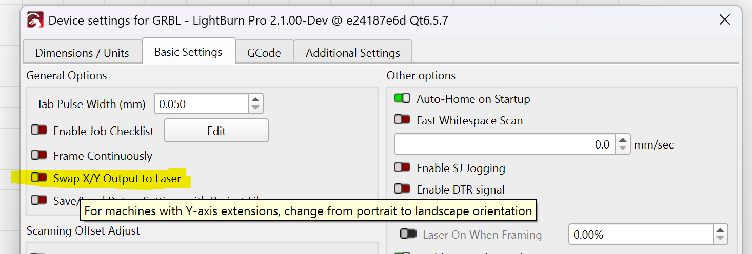 Gracias por la atención y la ayuda, Oz Owner, però creo que no me he explicado bien. Mi máquina no tiene problema de espacio, por lo qué si roto el lienzo me permitirá hacer el trabajo correctamente igual, sea en vertical o apaisado. Solo pretendo cambiar la orientación del lienzo de trabajo en LightBurn, de A4 vertical a A4 horizontal. Si hubiera algun problema en la grabación/corte con la máquina, volviendo a A4 vertical el trabajo, se solucionaría el problema. Insisto, solamente se trata de girar 90º el lienzo de trabajo en LightBurn, para poder hacer el diseño que quiero hacer.