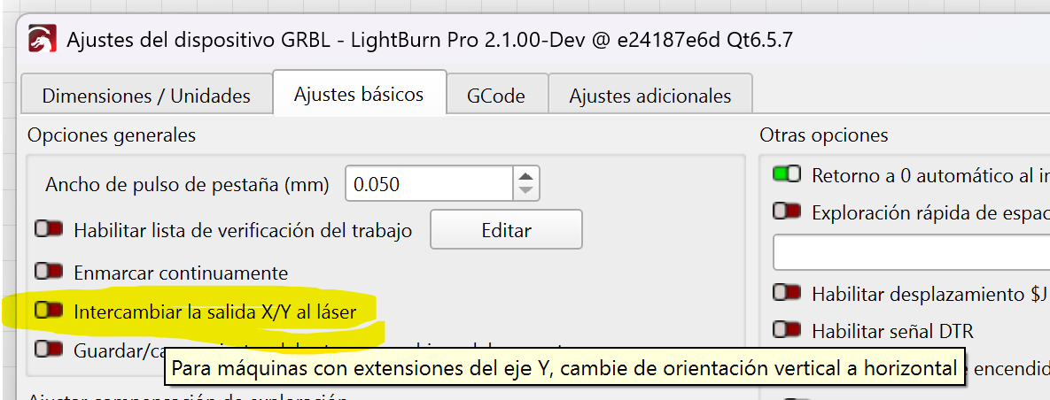 Si tu láser es de tamaño A4 y quieres rotar el lienzo porque tu láser está rotado, tenemos una opción aquí: