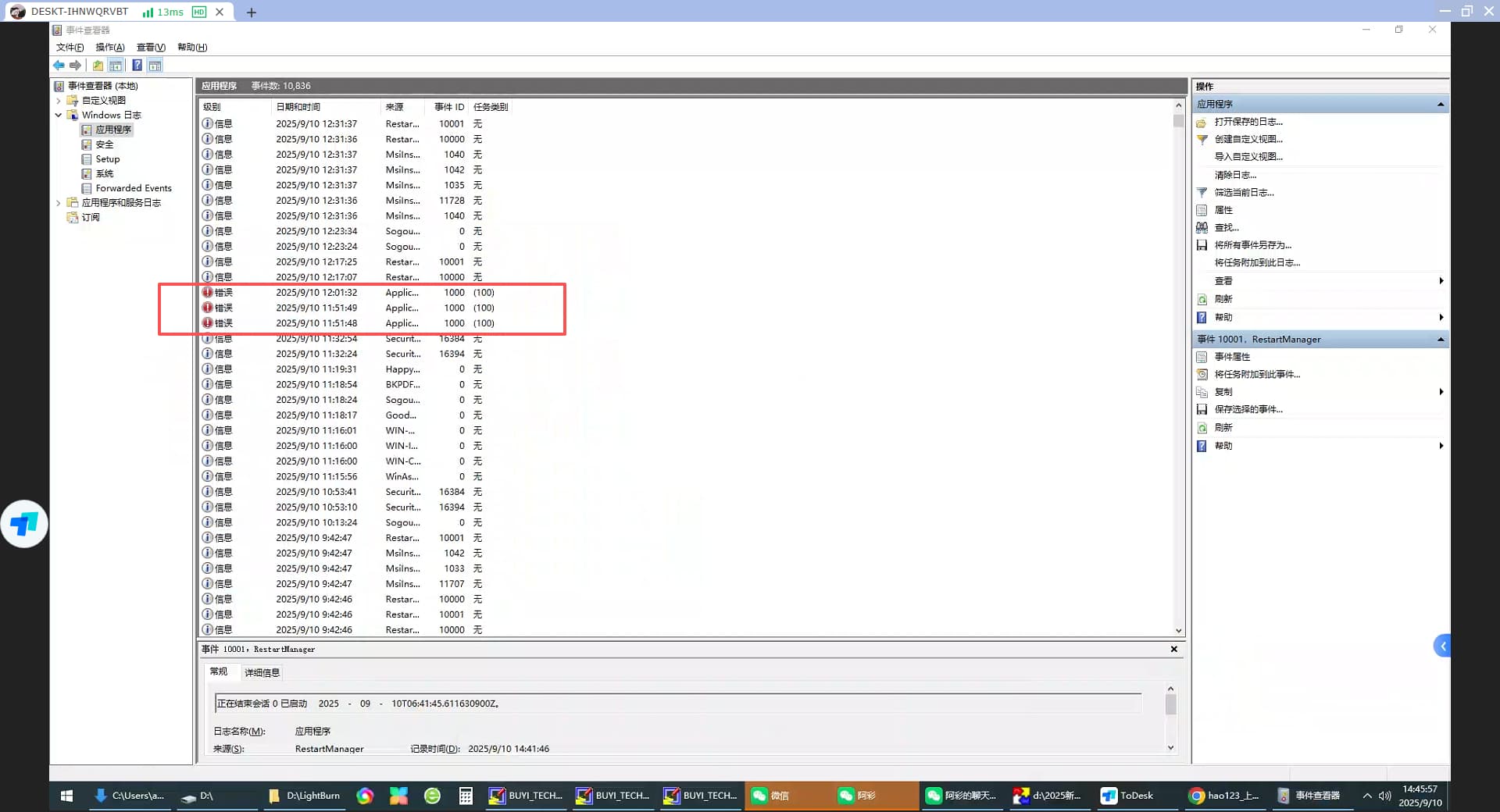 I opened the event viewer at 2 pm, and only when I operated at 10:30 am did a red error message appear.