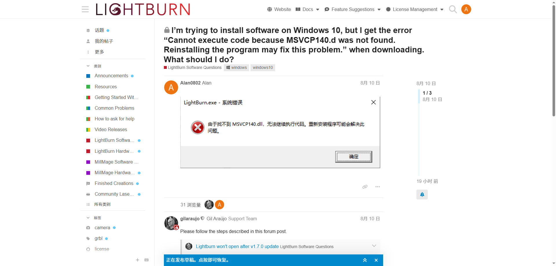 However, even after downloading https://aka.ms/vs/17/release/vc_redist.x64.exe or https://aka.ms/vs/17/release/vc_redist.x86.exe, I still can’t successfully open Lightburn, and my computer is still Windows 10.