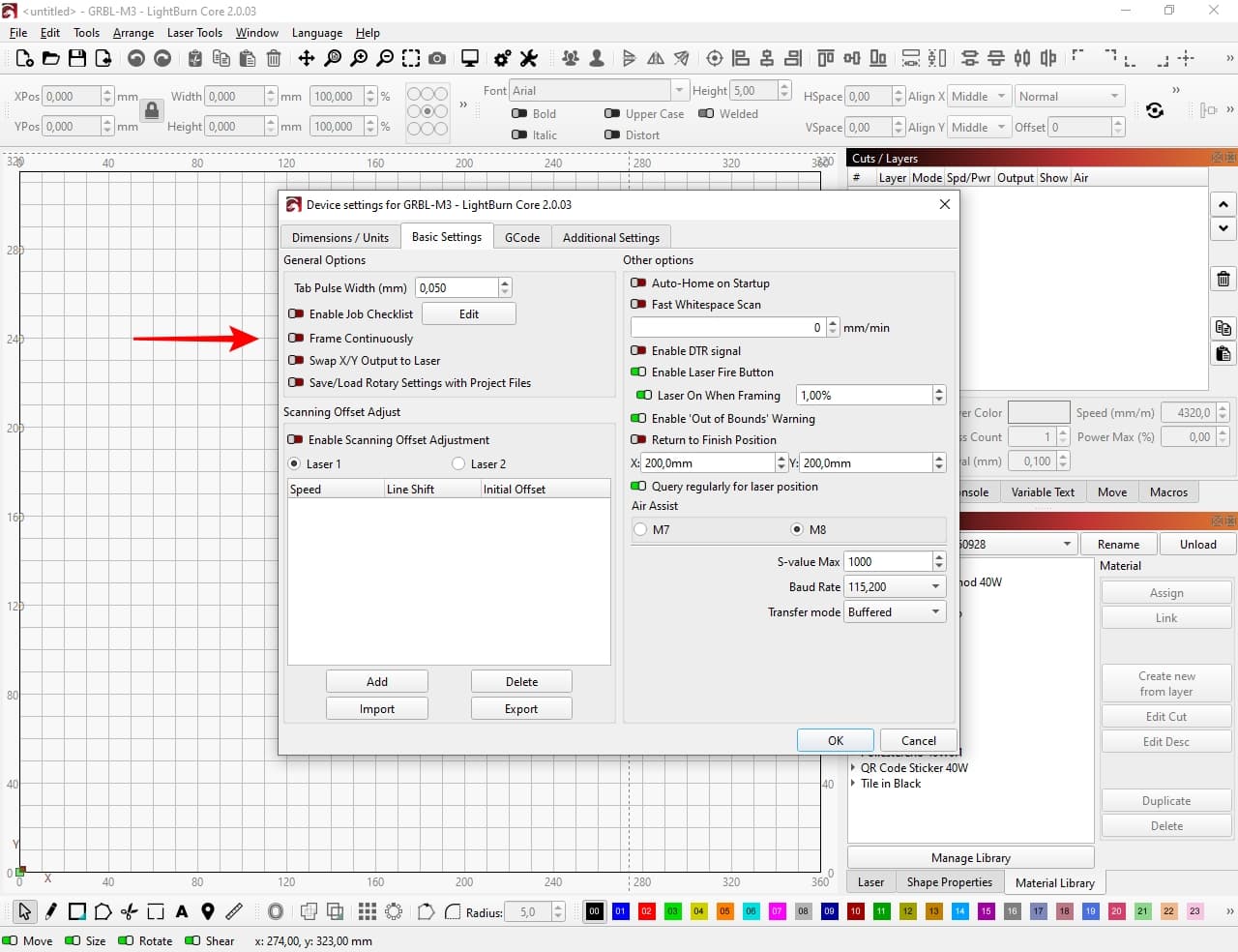 Does this happen when you switch to GRBL device under “Devices” in the “Laser” window?