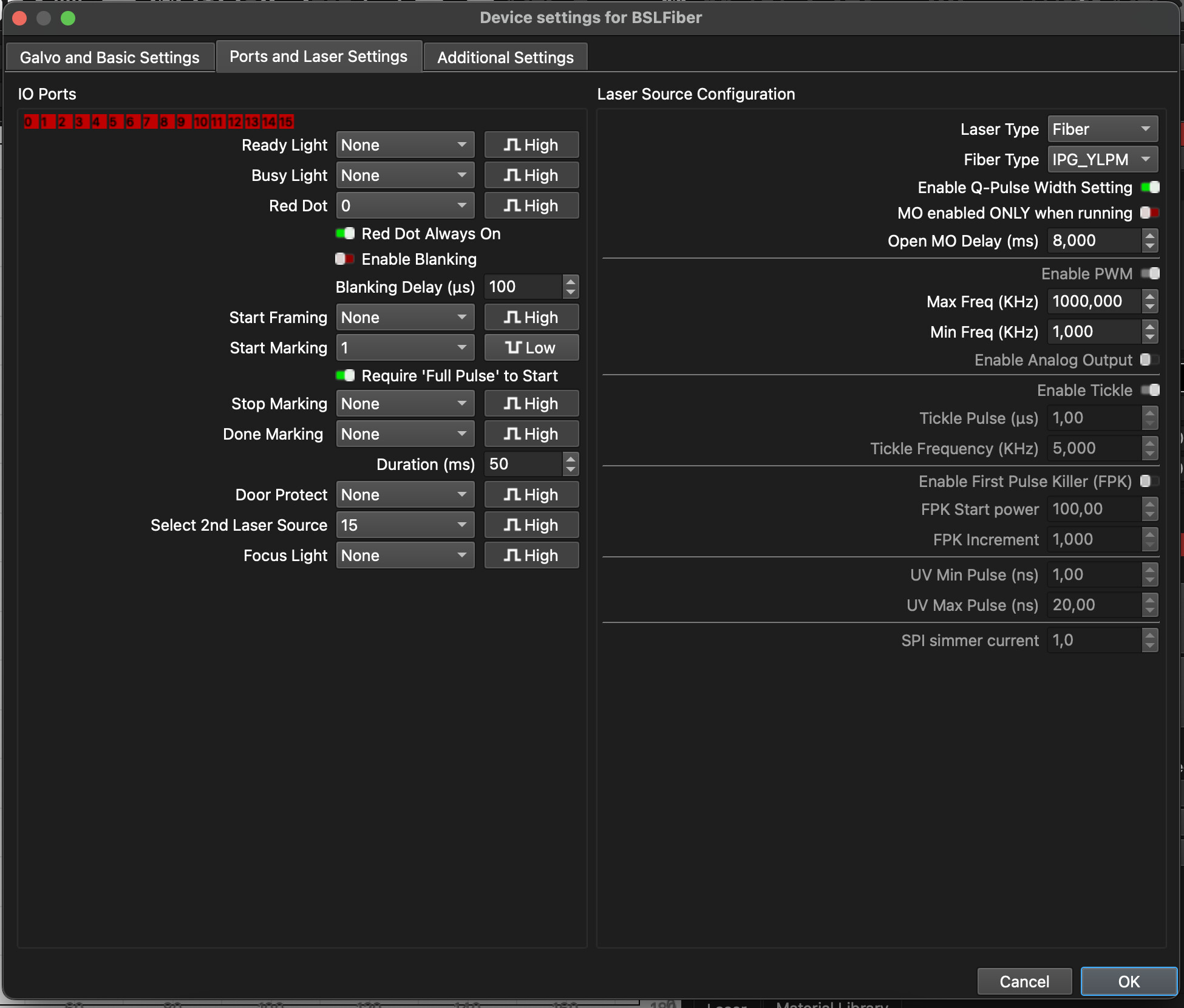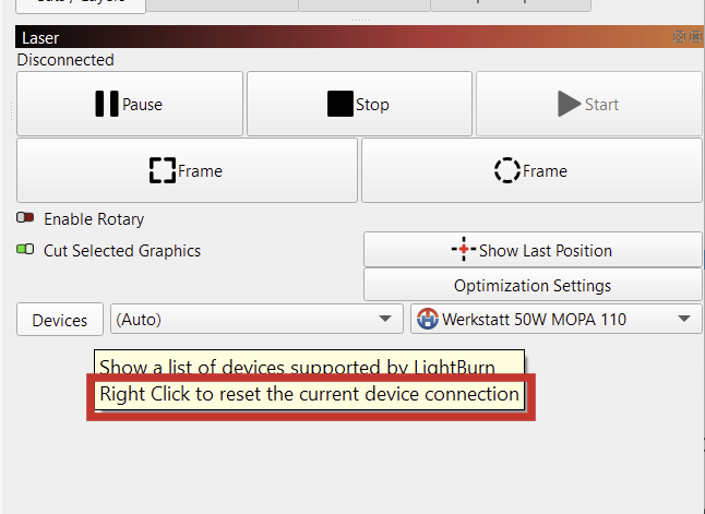 I am having issues with my 30W Mopa from Monport. Whenever I am framing or sending a job for engraving lightburn will crash.