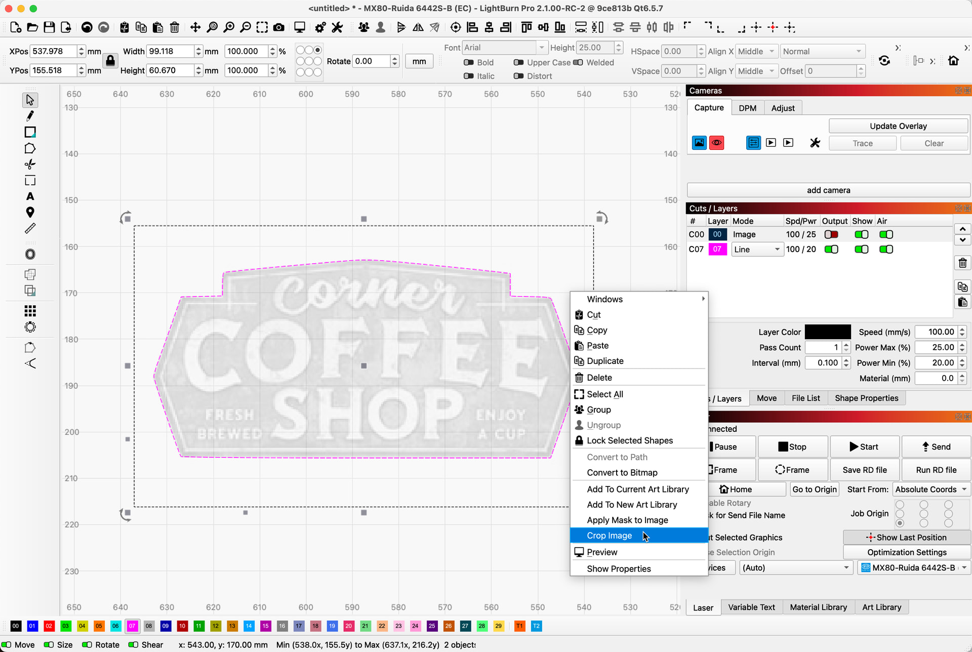 -With both the boundary and the image selected, right-click and select ‘Crop’ to remove the background.