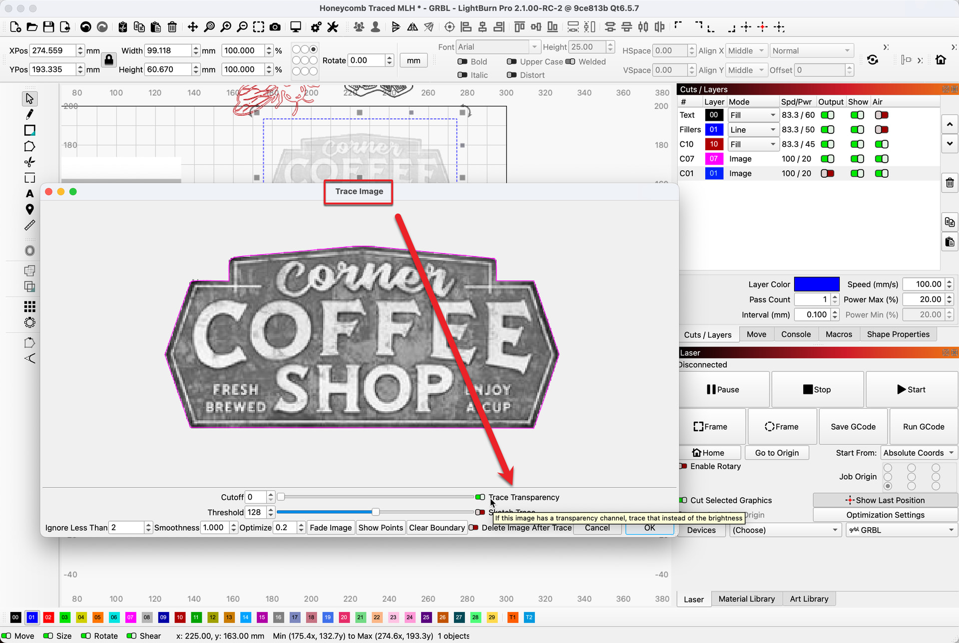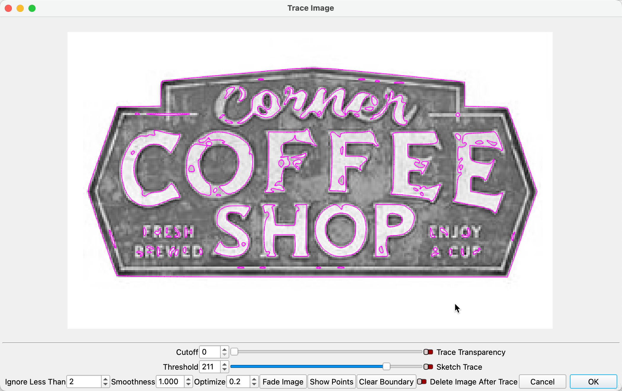 Then use the Trace Image with Trace Transparency selected to produce the outline of your sign.