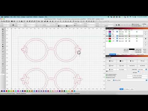 They are glasses with stars on the end for a craft project. The client is asking for glasses with stars. I didn’t want to just provide the glasses with a star shape on the edge, but actually show the image of the star. But to properly cut out the glasses, it needs to have a cut out layer for the outside and inside glasses part, and an etch layer to show the star shape on top of the frames. I am going to suggest to the client that the star shape is cut out separately and glued on as an additional layer on the ends of the glasses. If she agrees, all of this is a moot point.