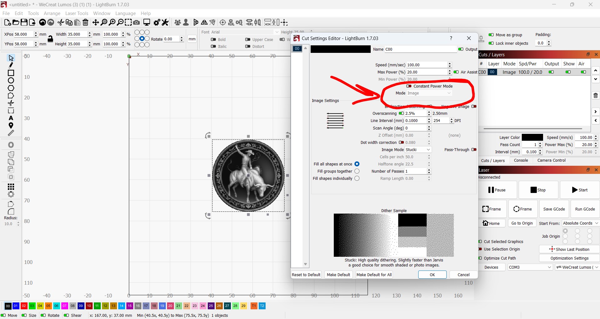 Approaching Wecreat support, they said to talk to Lightburn since the “Mode” feature is greyed out. Do we need the Pro version?