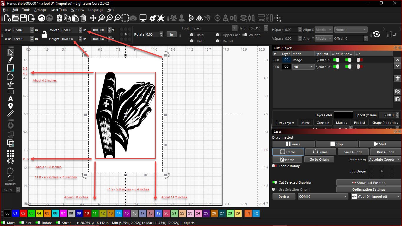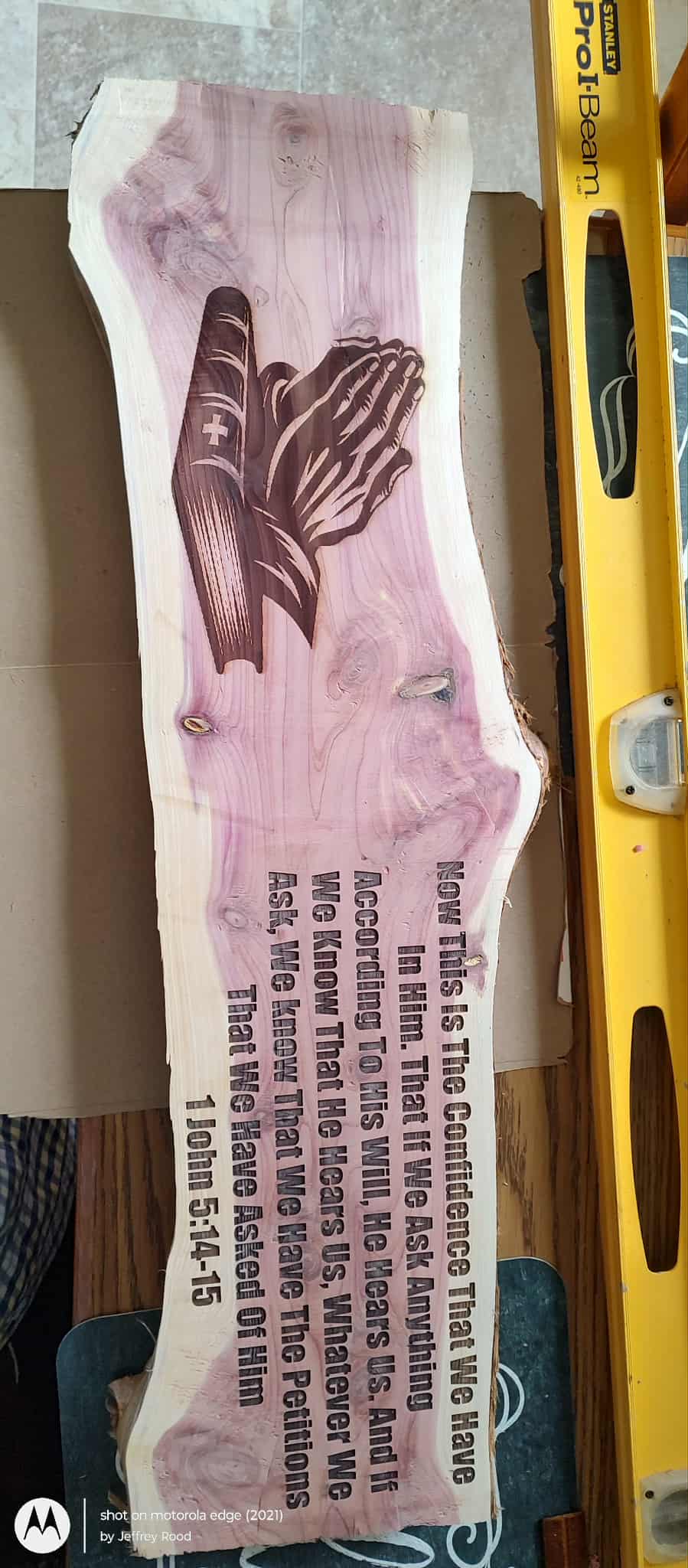 I understand about the measurements, I think? Obviously I need to get the projects laid out so that I know where the artwork will land so that I can place right on spot to turn out right. I believe I found a way around it, I will have to go back and think about it. It has been crazy getting my new laser set up and I will have to look into it. I think I traced it or something like that? I may have just measured with the measuring tool. I did get something worked out because I finished that plaque for him. I am pretty sure I used the trace feature to get rid of the box, that is what I did yesterday when laying out one.